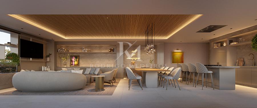 Os apartamentos apresentam tipologias variadas, com 2 a 4 suítes e metragens que variam aproximadamente de 80 m² a 292 m², além de opções duplex e coberturas. Os ambientes sociais foram projetados para oferecer amplitude e integração, com living conectado à cozinha e à sacada com churrasqueira a carvão, criando espaços ideais para convivência e momentos de lazer em casa.