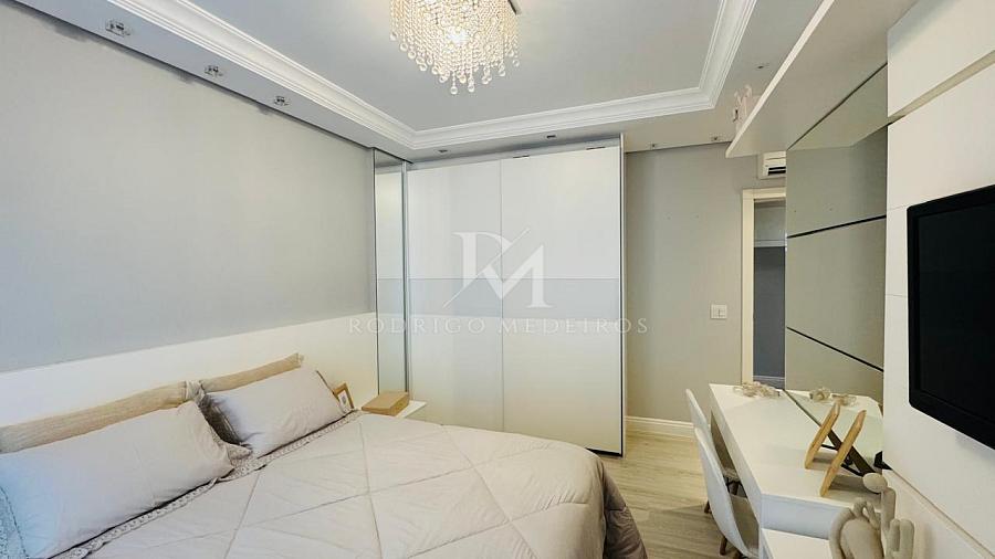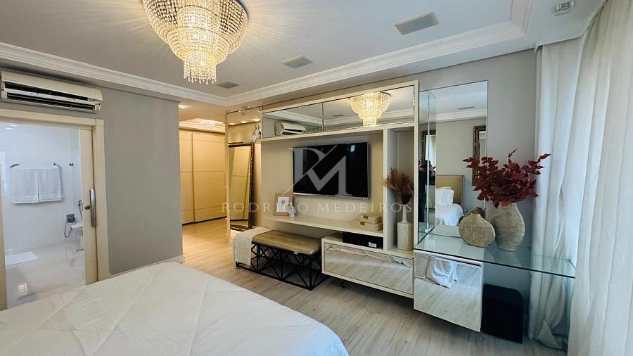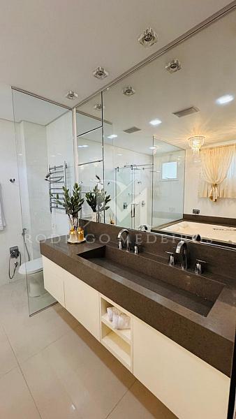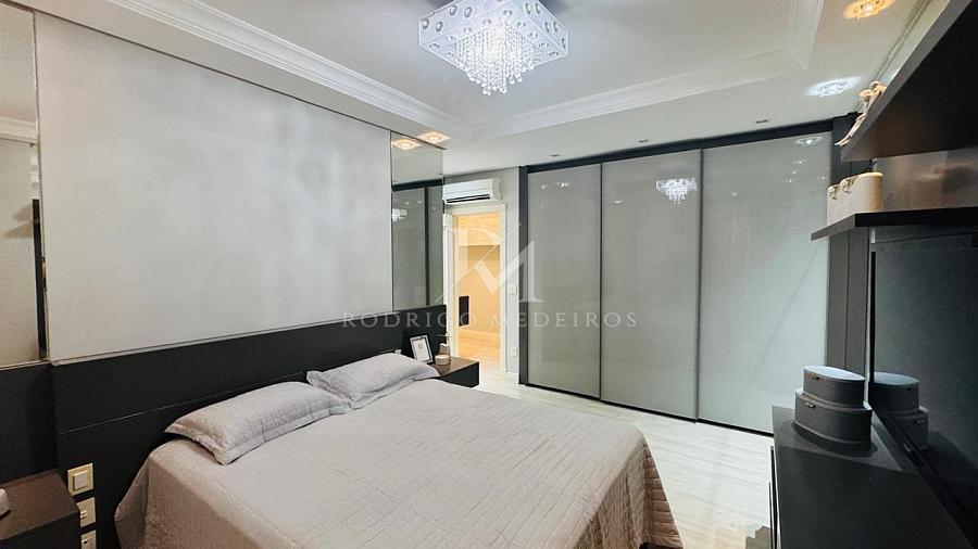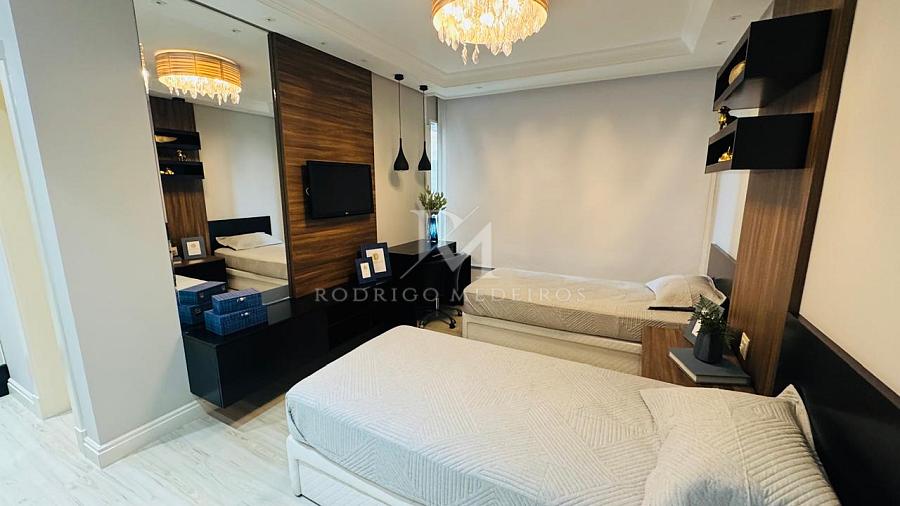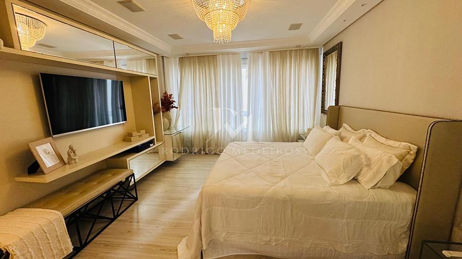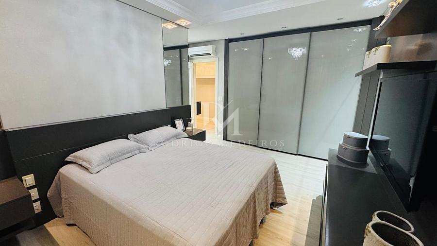 São quatro suítes, sendo uma suíte master com closet e hidromassagem, garantindo conforto e privacidade em alto nível. A planta é funcional e bem distribuída, incluindo ainda dependência de empregada, ideal para quem busca praticidade no dia a dia ou recebe com frequência.
