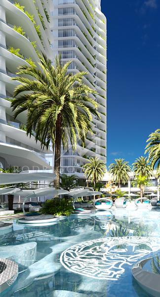Com mais de 20 mil metros quadrados, o projeto contempla oito torres residenciais, com apartamentos espaçosos de até 531 m² e coberturas que atingem 900 m². O design de interiores será assinado pela icônica grife Versace, conferindo um padrão internacional de elegância e requinte.