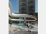O conjunto arquitetônico se integra a um boulevard privativo que conecta os edifícios a um parque esportivo exclusivo, enquanto passarelas de estética futurista levam ao Wellness Center, localizado ao fundo do terreno, atrás de uma imponente cascata cenográfica.