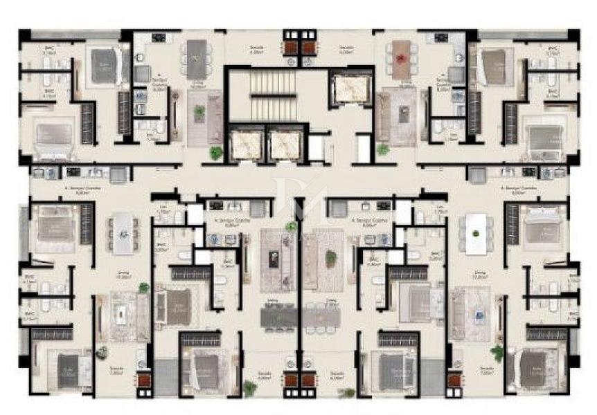Os apartamentos possuem 66 metros quadrados de área privativa, com uma planta bem distribuída que contempla dois dormitórios, sendo uma suíte, living integrado, lavabo, área de serviço, sacada com churrasqueira e uma vaga de garagem.