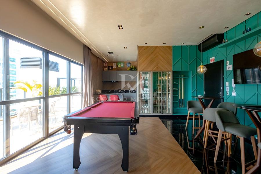 A área de lazer é um dos destaques do Brava Garden. No térreo, conta com salão de festas, espaço com lareira e playground. No rooftop, oferece piscina de borda infinita, espaço gourmet, pub com jogos, academia e spa – um ambiente pensado para relaxar e aproveitar bons momentos com a família ou amigos.
