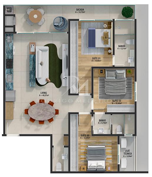 Os apartamentos contam com três opções de planta, pensadas para se adaptar a diferentes perfis e necessidades. Há possibilidade de personalização dos ambientes, com acabamentos de alto padrão que garantem sofisticação, conforto, segurança e exclusividade em cada detalhe.