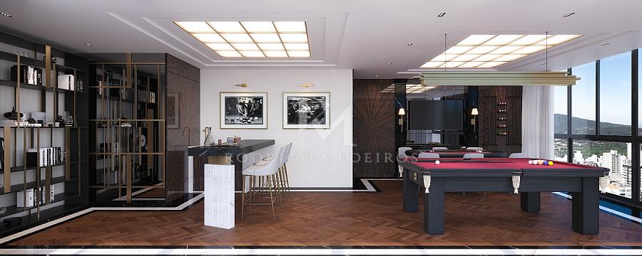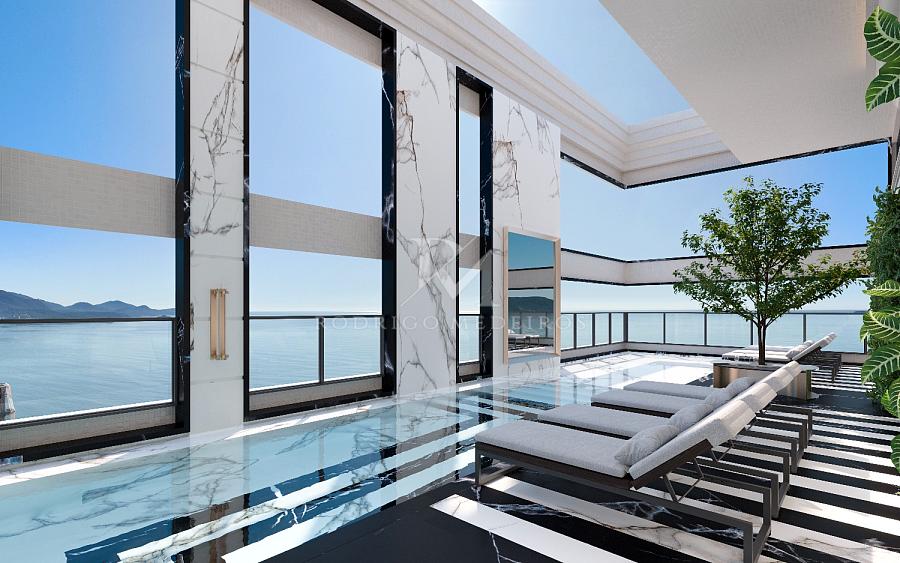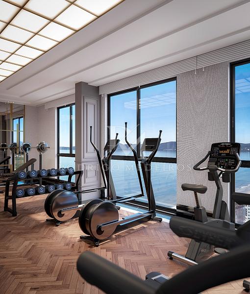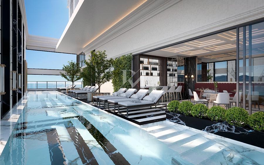 O requinte se estende às áreas comuns, com hall social decorado com mármores importados, salão de festas equipado com louçaria filetada a ouro, sala de jogos, espaço kids, academia completa, piscinas internas e externas climatizadas, bar da piscina, sauna úmida, SPA e rooftop com vista panorâmica para o mar. Tudo sonorizado, climatizado e decorado com curadoria refinada — incluindo mobiliário Sierra, Saccaro ou similar.