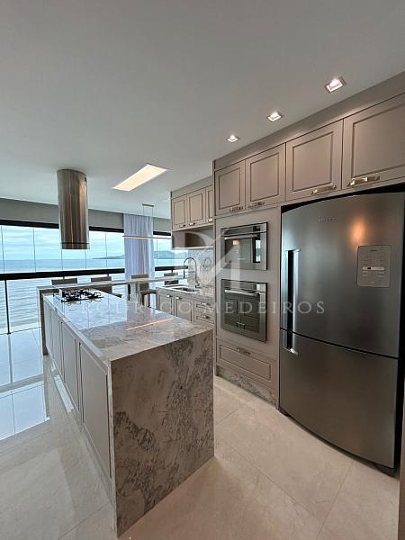 O imóvel dispõe de quatro vagas de garagem, um diferencial relevante para frente mar na Meia Praia.