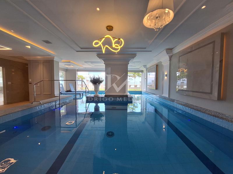 No térreo, os moradores poderão desfrutar de uma piscina aquecida, ideal para todas as estações. No rooftop, o lazer continua com uma academia completa, sala de jogos e uma piscina com borda infinita, que proporciona uma vista panorâmica e permanente para o mar. O espaço ainda conta com salão de festas e brinquedoteca, criando um ambiente perfeito tanto para momentos de descanso quanto de convivência em família.