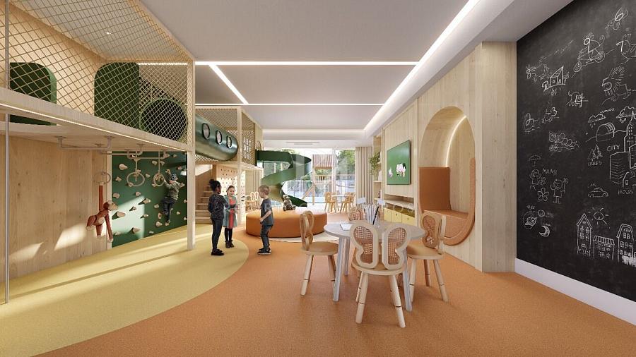 O condomínio apresenta uma infraestrutura completa, com opções de lazer e conveniência para toda a família. A brinquedoteca estimula a imaginação dos pequenos, enquanto o quiosque com churrasqueira é ideal para encontros com amigos. Piscinas adulto e infantil oferecem momentos de descontração ao ar livre, e a sala de jogos traz diversão para todas as idades. Há ainda espaço fitness, spa e um salão de festas planejado para celebrar grandes momentos.