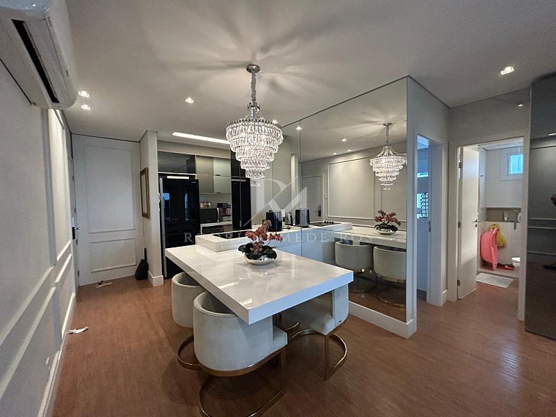 Com 75m² de área privativa, o imóvel possui dois dormitórios, sendo uma suíte, e traz uma atmosfera acolhedora com acabamentos de alto padrão. O ambiente é favorecido pela presença do sol da manhã e da tarde, valorizando ainda mais a varanda fechada com vista panorâmica, perfeita para momentos de contemplação ou convívio.