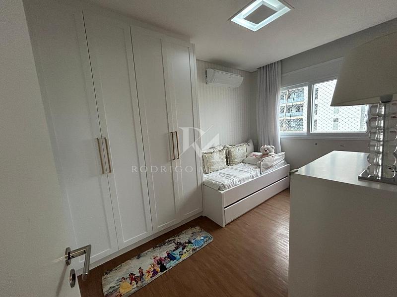 A cozinha planejada se integra à copa e aos demais espaços, criando um layout fluido e convidativo. Armários embutidos, aquecedor central, ar-condicionado e móveis planejados nos dormitórios completam o conforto interno.