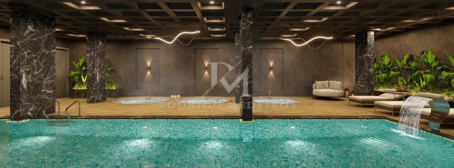 O grande diferencial está na área de lazer: são 1.850m² dedicados ao bem-estar, entretenimento e relaxamento, totalmente mobiliados, decorados e equipados. O projeto inclui piscina aquecida, salão de festas, spa com hidromassagem, academia, espaços gourmet, brinquedoteca, bar inglês, sala de jogos, praça do fogo, pet place e muito mais.