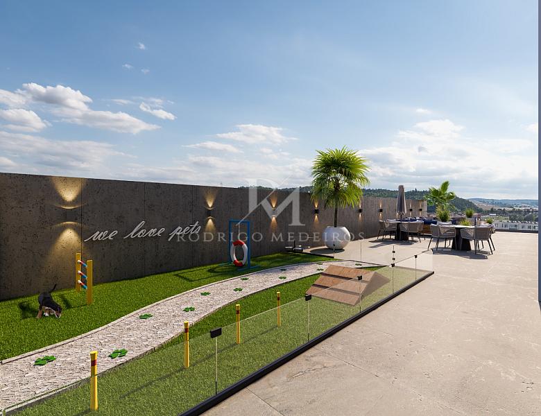 O grande diferencial está na área de lazer: são 1.850m² dedicados ao bem-estar, entretenimento e relaxamento, totalmente mobiliados, decorados e equipados. O projeto inclui piscina aquecida, salão de festas, spa com hidromassagem, academia, espaços gourmet, brinquedoteca, bar inglês, sala de jogos, praça do fogo, pet place e muito mais.