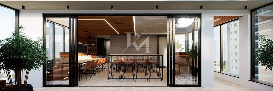 Com 139,94m² de área privativa, este apartamento de alto padrão oferece três dormitórios, sendo uma suíte, além de ambientes bem distribuídos, sacada com churrasqueira e dois banheiros. Os detalhes de acabamento e a infraestrutura tecnológica refletem um projeto atual, pensado para quem valoriza praticidade e sofisticação no dia a dia.
