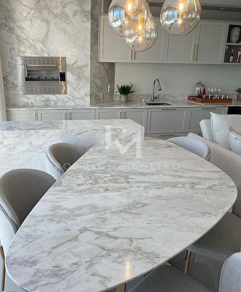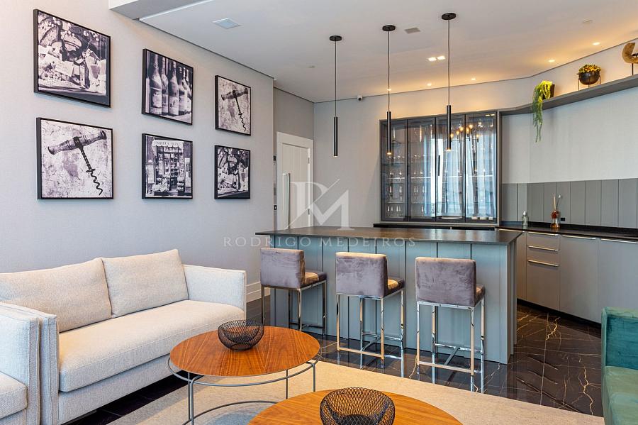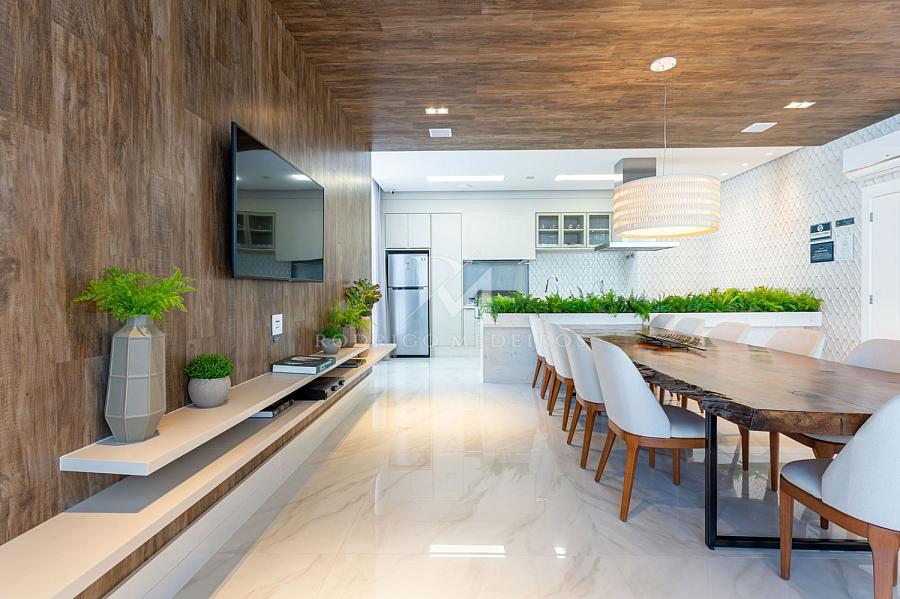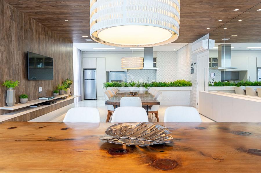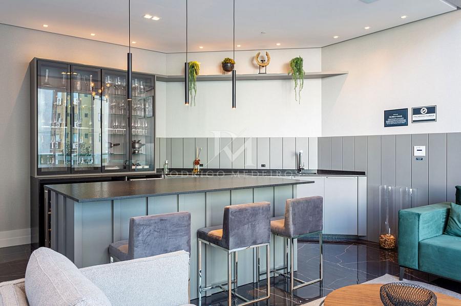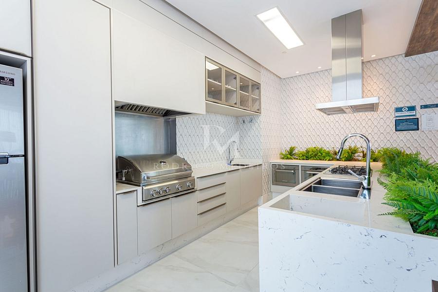 A cozinha equipada e as 3 vagas de garagem complementam o conforto e a praticidade deste apartamento que oferece o melhor da vida à beira-mar.