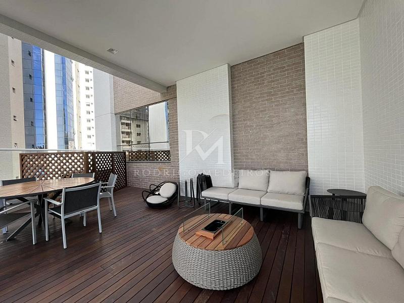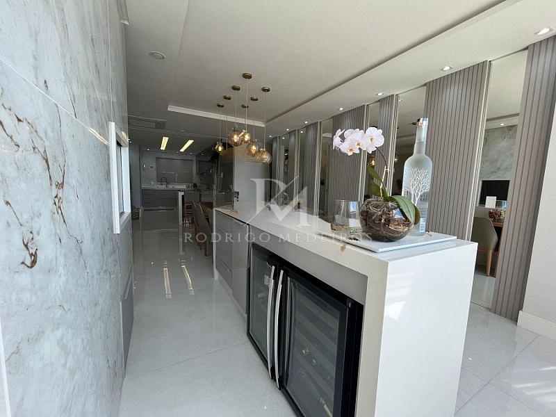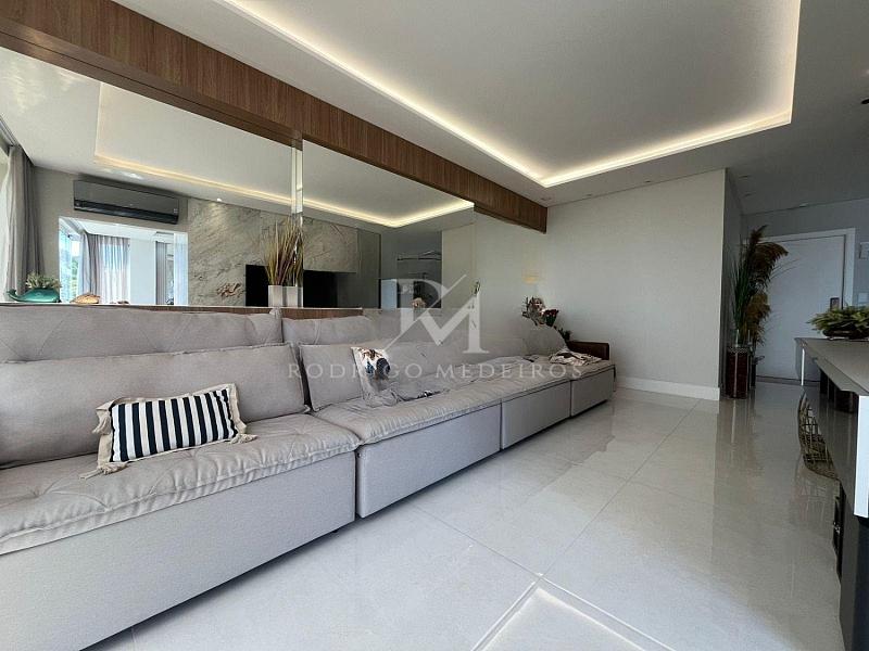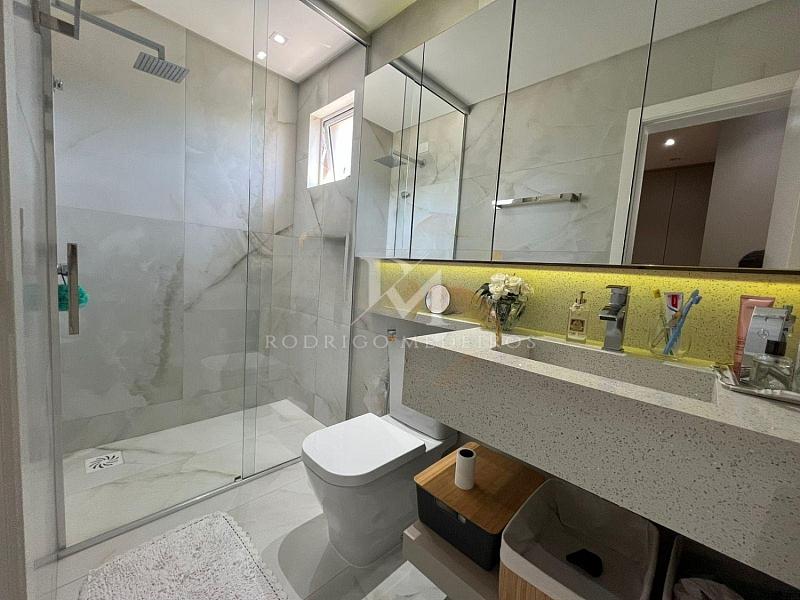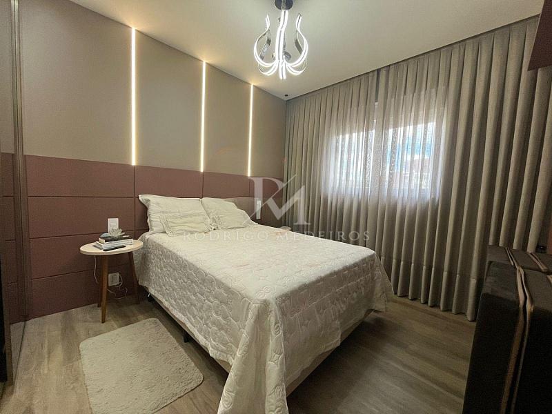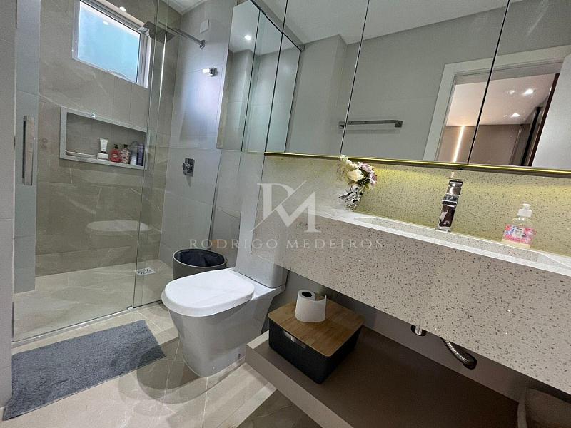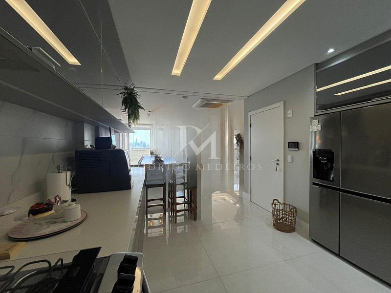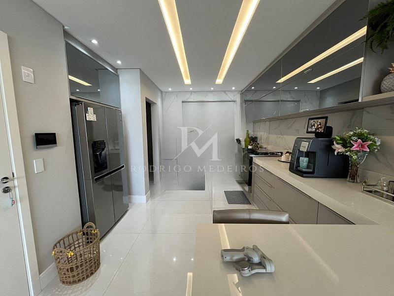 Com 190 m² privativos, o imóvel conta com 4 suítes espaçosas, sendo uma delas master, além de 6 banheiros no total. O living integrado abriga sala de estar, jantar e cozinha com churrasqueira, favorecendo a convivência em ambientes amplos e iluminados.