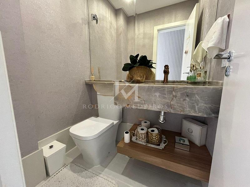 Os acabamentos foram cuidadosamente selecionados: piso vinílico nos quartos, porcelanato nas áreas sociais, persianas automatizadas, portas laqueadas, janelas Reiki, rebaixo em gesso e infraestrutura completa para climatização e automação. A sacada integrada amplia a sensação de liberdade, enquanto a churrasqueira a carvão traz a tradição para dentro de casa.