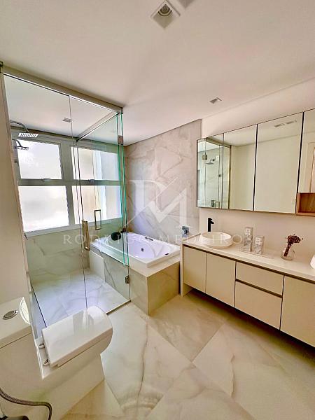 O padrão de acabamento é um dos grandes destaques, com soluções modernas e materiais de altíssima qualidade. O apartamento contará com fechadura eletrônica na entrada, persianas automatizadas, infraestrutura para automação residencial, tratamento acústico no piso, climatização preparada em todos os ambientes, rebaixo total em gesso, piso porcelanato nas áreas sociais, vinílico na área íntima, tomadas USB, portas laqueadas e diversos outros detalhes que reforçam a elegância do imóvel.