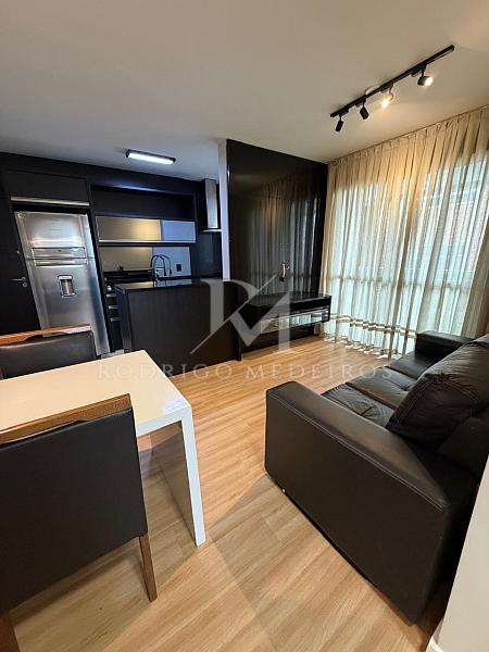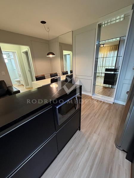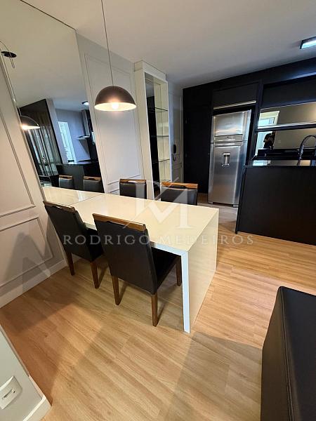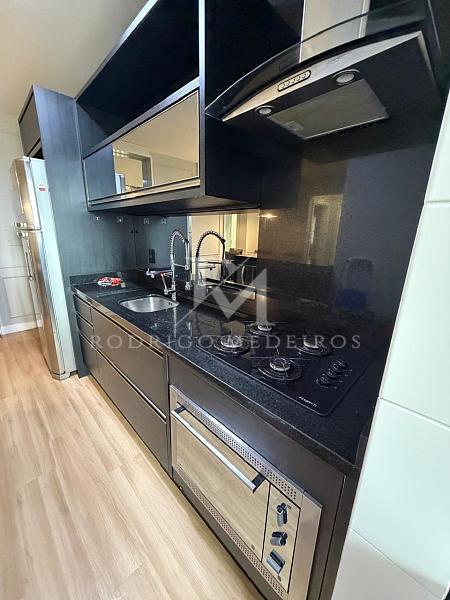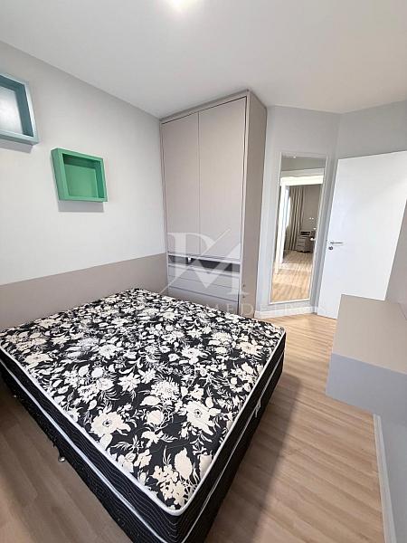 Na área íntima, o imóvel conta com dois dormitórios, sendo uma suíte, garantindo conforto e privacidade. Os ambientes são bem iluminados e ventilados, reforçando a sensação de bem-estar. O padrão de mobiliário e acabamentos contribui para uma experiência de moradia completa, sem necessidade de intervenções.