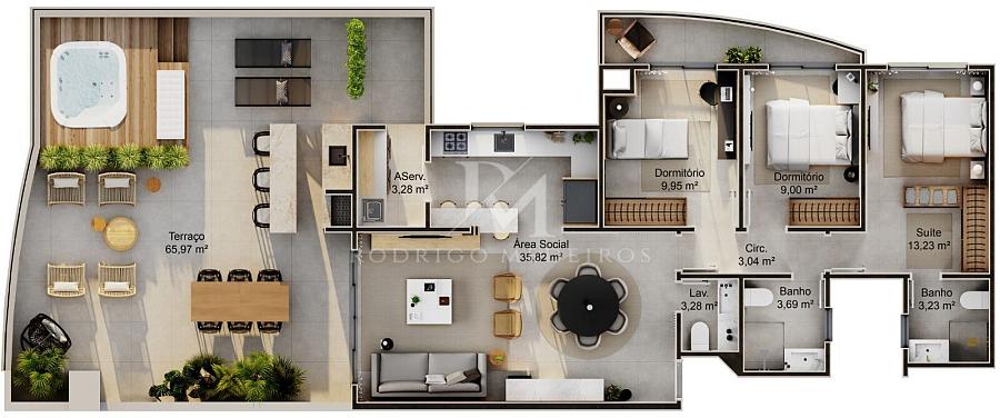 Apartamentos Alto Padrão, com 2 Dormitórios, sendo 1 Suíte, garantindo total privacidade e conforto.