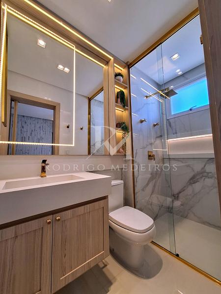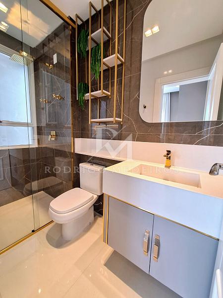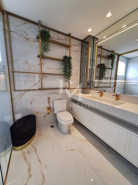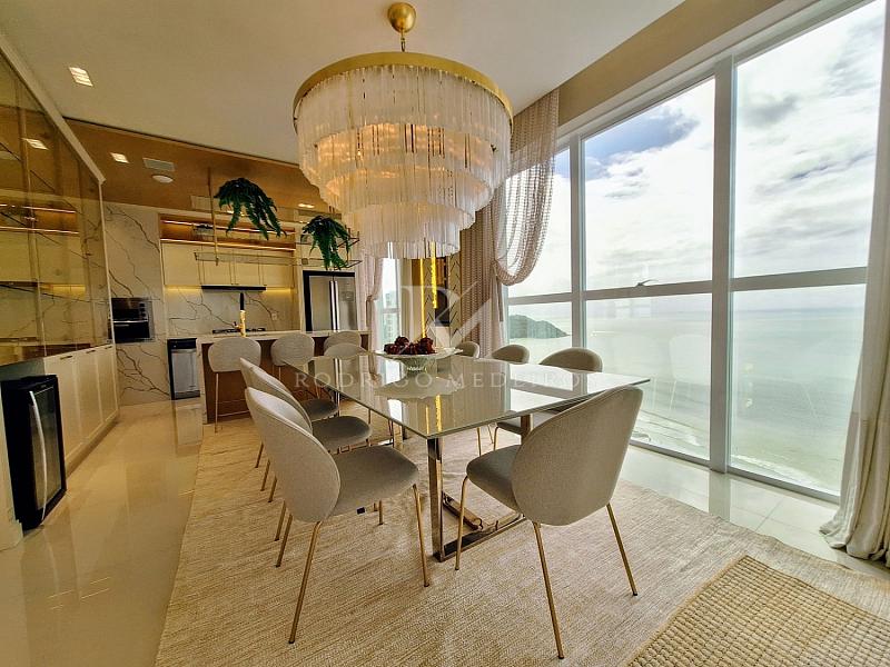 Com 160m² de área privativa e 384,21m² de área total, a unidade possui 4 suítes, 6 banheiros e 3 vagas de garagem, além de uma vista panorâmica permanente.