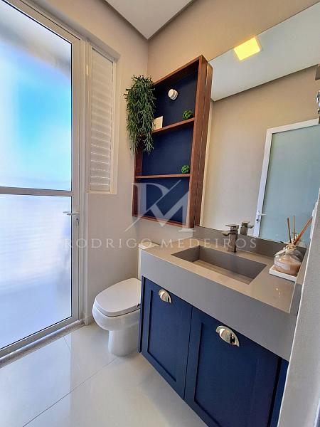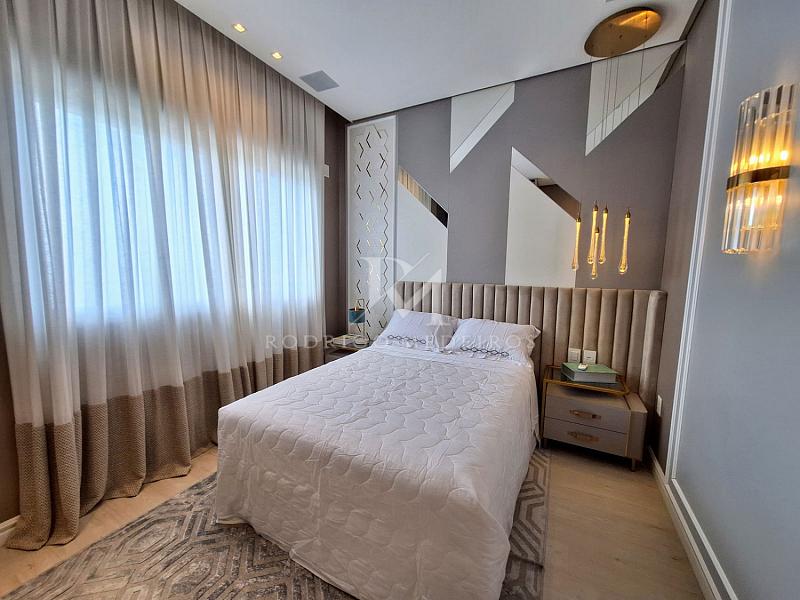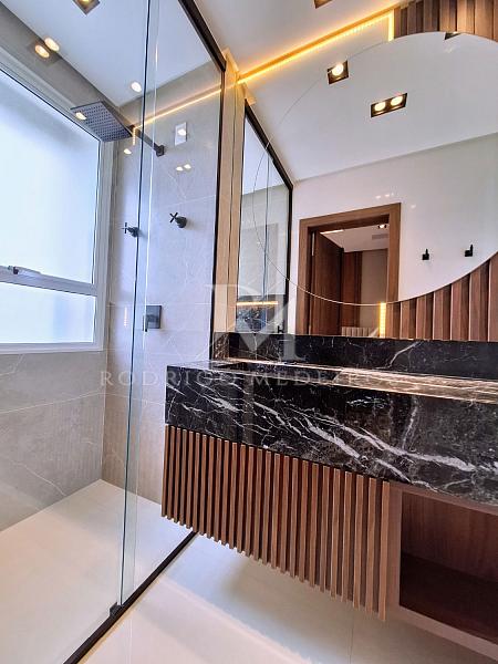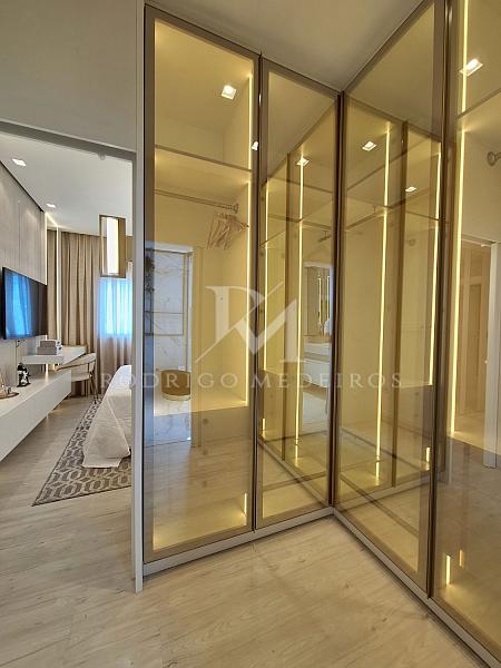 O imóvel conta com living amplo, lavabo social, área de serviço com lavabo de apoio, acabamento em gesso, sistema de climatização VRF Samsung, automação completa SAVANT, home theater com sonorização integrada, cortinas e persianas automatizadas, além de portas com isolamento acústico.