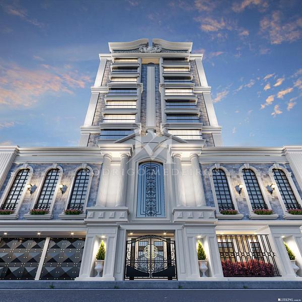 O edifício conta com apenas 26 apartamentos distribuídos em 12 pavimentos, com três unidades por andar, garantindo uma experiência mais reservada e organizada. A proposta arquitetônica valoriza linhas clássicas e um padrão construtivo que se traduz em acabamentos refinados e ambientes bem resolvidos.