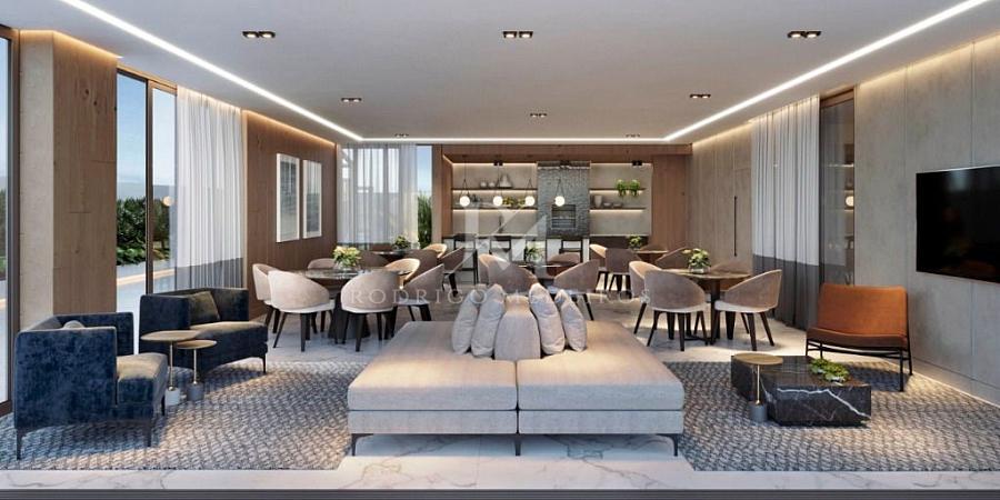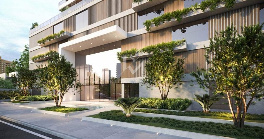 Cada andar conta com apenas dois apartamentos, garantindo exclusividade e privacidade. As unidades possuem hall privativo, fechadura digital, persianas embutidas nas janelas dos quartos e uma suíte master com closet e banheira de hidromassagem, além de infraestrutura pronta para automação residencial. O edifício conta ainda com portaria automatizada, controle de acesso, gerador de energia para as áreas comuns e elevadores, além de oferecer até três vagas de garagem por apartamento, com box individual.