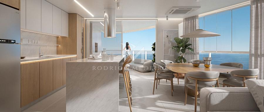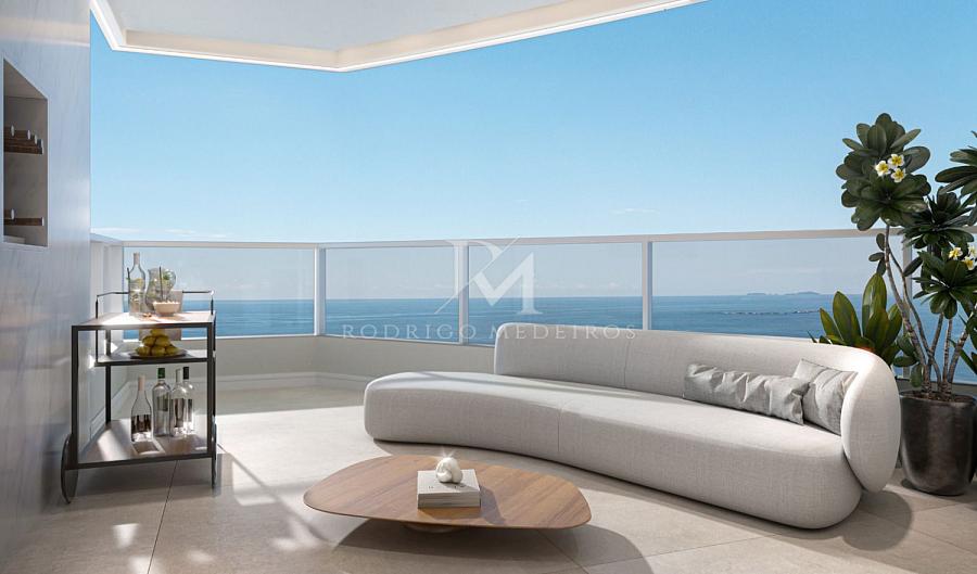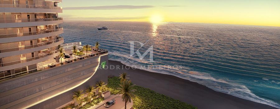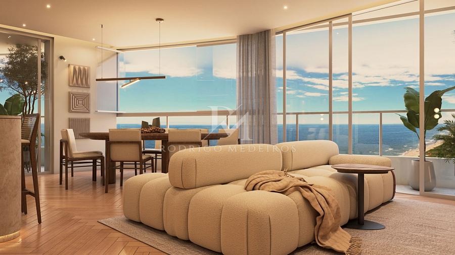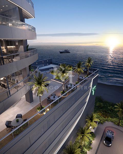 De frente para o mar, com vista definitiva e acesso direto à faixa de areia, o empreendimento foi concebido com inspiração náutica e traços contemporâneos que dialogam com o movimento das ondas. A arquitetura valoriza curvas suaves, amplas aberturas e varandas projetadas para manter o oceano sempre presente — da sala à suíte.
