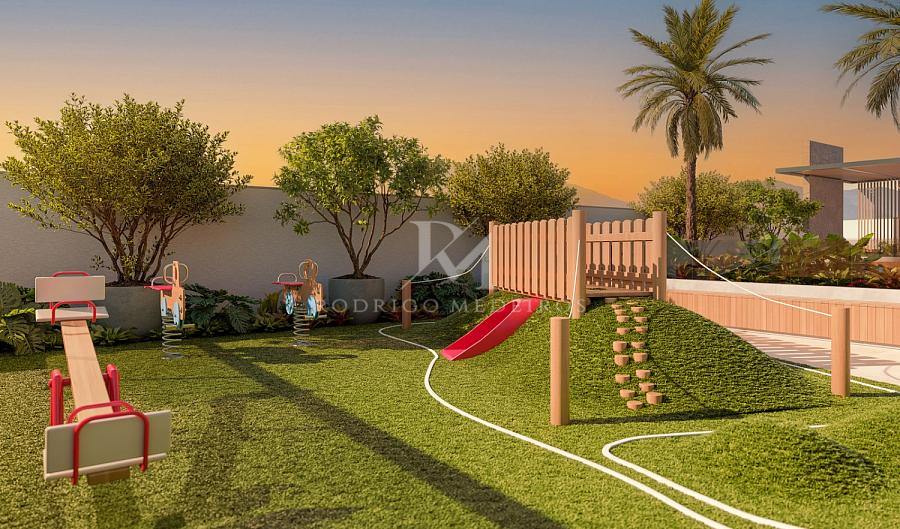 Além do estilo, há solidez. O empreendimento conta com gerador para áreas comuns e elevadores, controle de acesso por biometria ou senha, medidores individuais, infraestrutura para carros elétricos e possibilidade de vagas extras e box privativo.