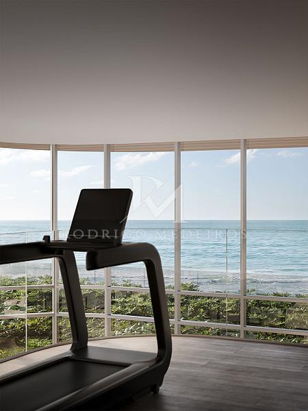 O projeto traduz a arte de viver diante do oceano: amplas áreas envidraçadas permitem que os horizontes invadam os ambientes, transformando a vista infinita em parte da rotina. O design refinado das torres valoriza a exclusividade do terreno mais nobre de Jurerê, em frente ao mar, elevando o conceito de morar em Florianópolis a um novo patamar.