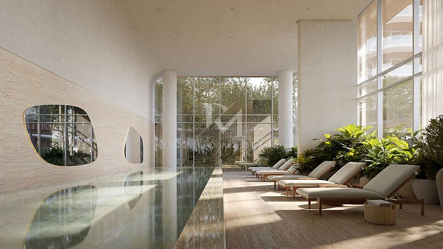 Este apartamento, com 444,96 m² de área total, combina amplitude e privacidade. São quatro suítes espaçosas, lavabo para visitas e um living integrado que conecta sofisticação e funcionalidade. A varanda com piscina privativa oferece um ambiente perfeito para contemplar o mar e aproveitar momentos únicos. A área de serviço é bem ventilada e funcional, acompanhada por dependência de colaborador, enquanto as três vagas de garagem garantem praticidade e segurança no dia a dia.