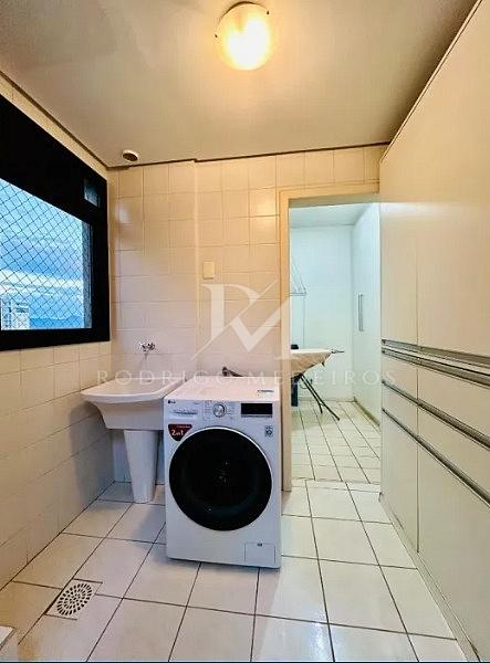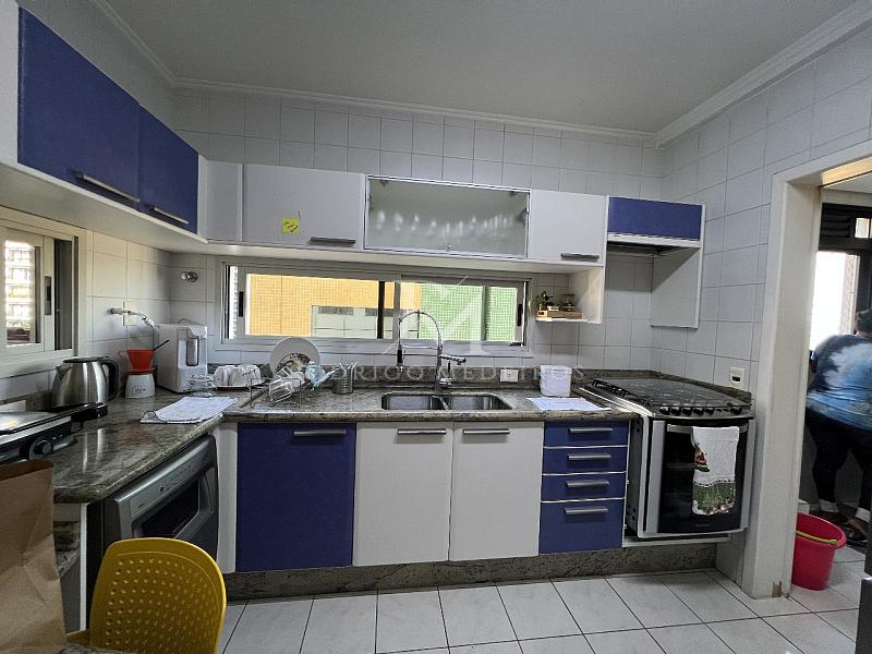 A cozinha é independente, com área de serviço separada, garantindo organização e praticidade no dia a dia. O apartamento conta com três dormitórios, sendo uma suíte, além de banheiro social e lavabo, atendendo bem às necessidades familiares.