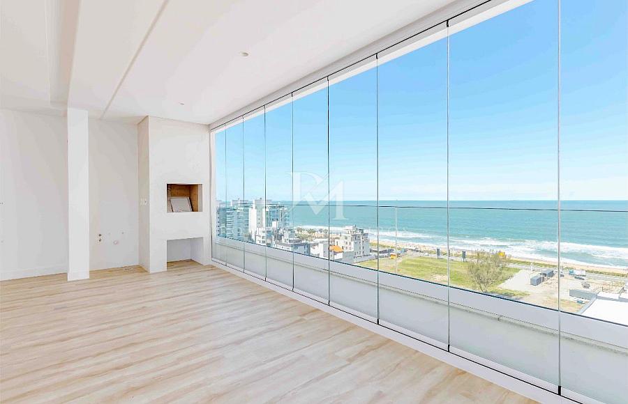 Com 163 m² de área privativa, o imóvel oferece três suítes bem distribuídas, garantindo conforto e privacidade. A área social apresenta living amplo e integrado, com excelente iluminação natural e conexão fluida entre estar, jantar e cozinha. A churrasqueira integrada valoriza momentos de convivência, enquanto a vista para o mar complementa a experiência de morar a poucos passos da praia.