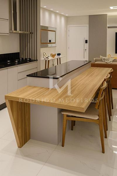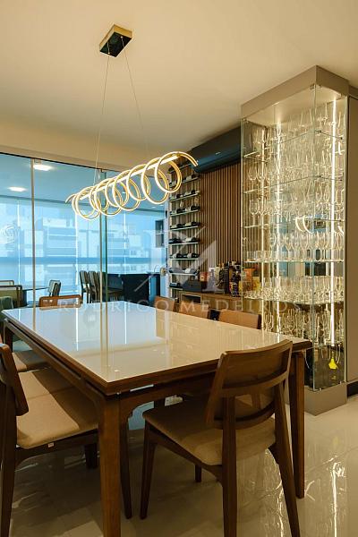 Com 160,45 m² de área privativa e 203 m² de área total, o imóvel apresenta uma planta ampla e bem distribuída. A sala se destaca pelo espaço e pela integração fluida com a sacada ampla com churrasqueira, criando um ambiente ideal para receber convidados ou aproveitar momentos mais reservados com a família.