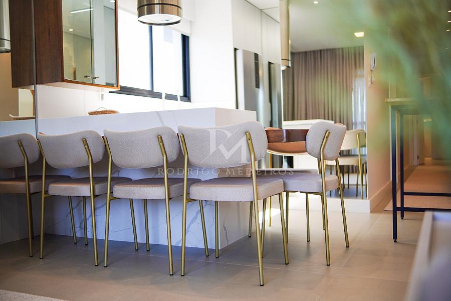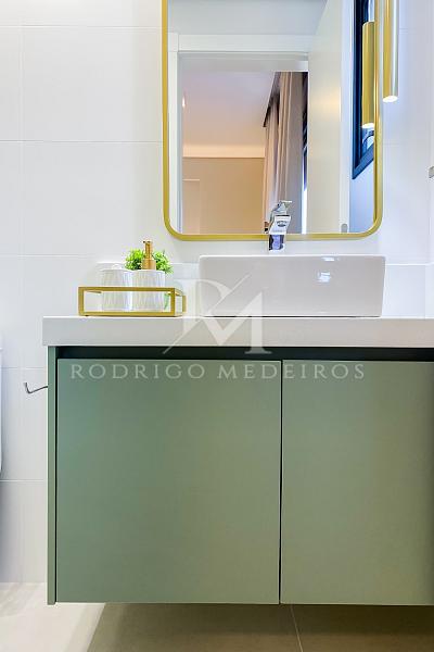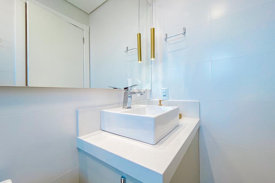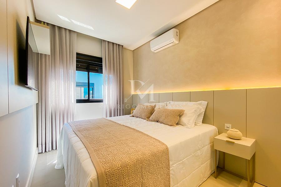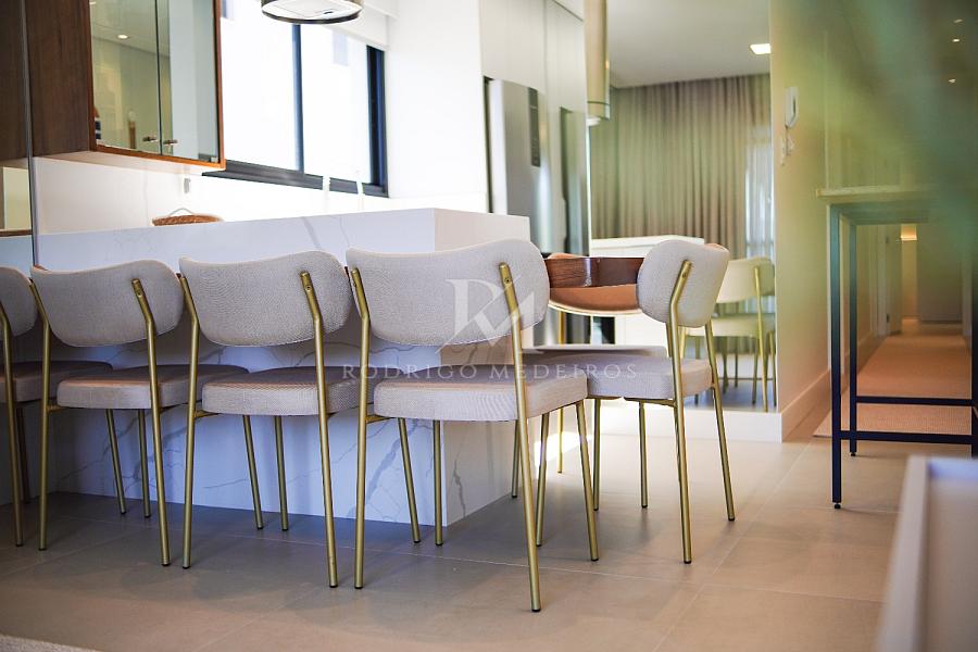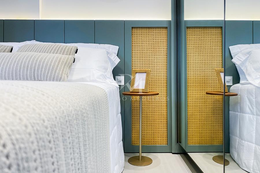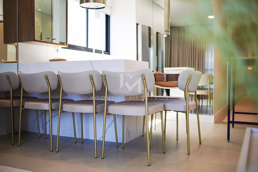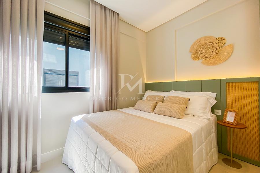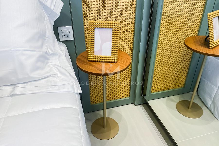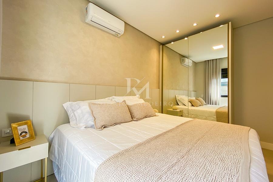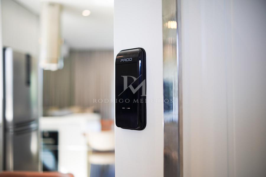 Os acabamentos reforçam a proposta de alto padrão: teto rebaixado em gesso, persianas eletrônicas integradas nos dormitórios, climatização por ar-condicionado tipo split em todos os ambientes, revestimento em porcelanato retificado e marcenaria com portas e rodapés laqueados. A infraestrutura inclui ainda hidrômetro individual, garantindo mais autonomia e controle no dia a dia.