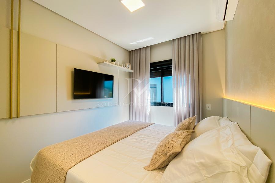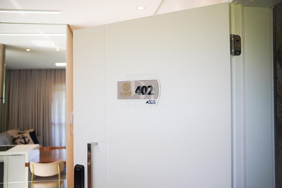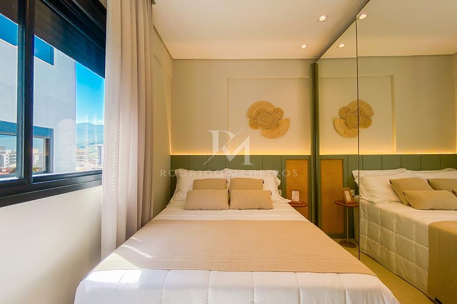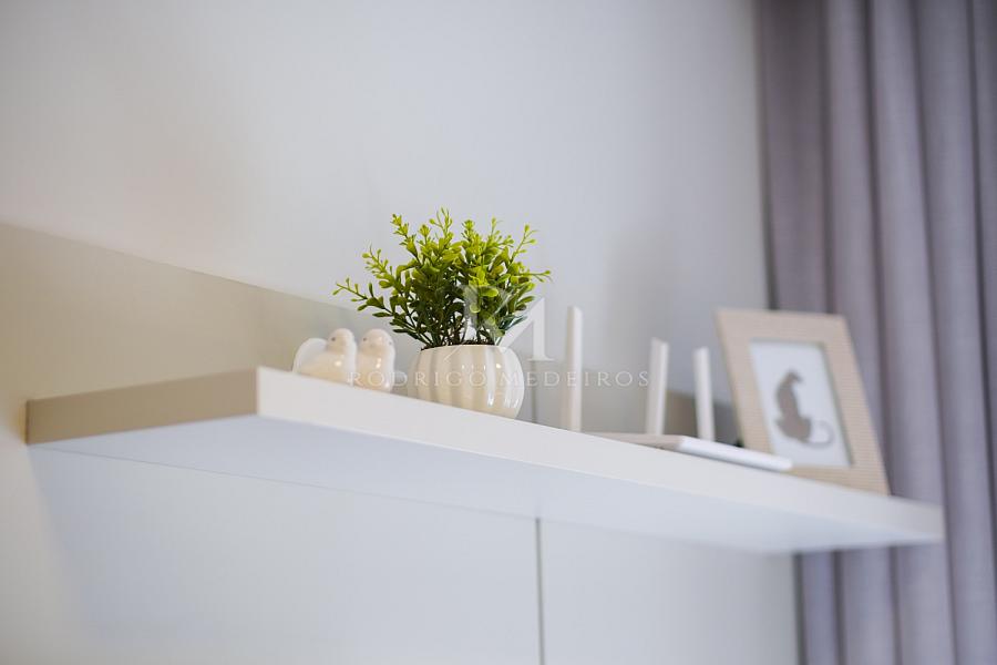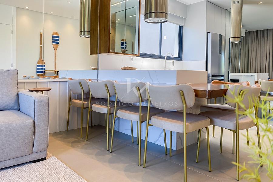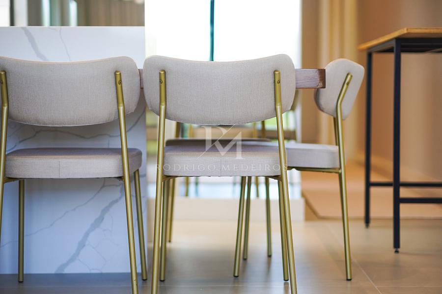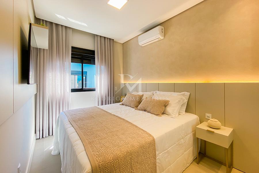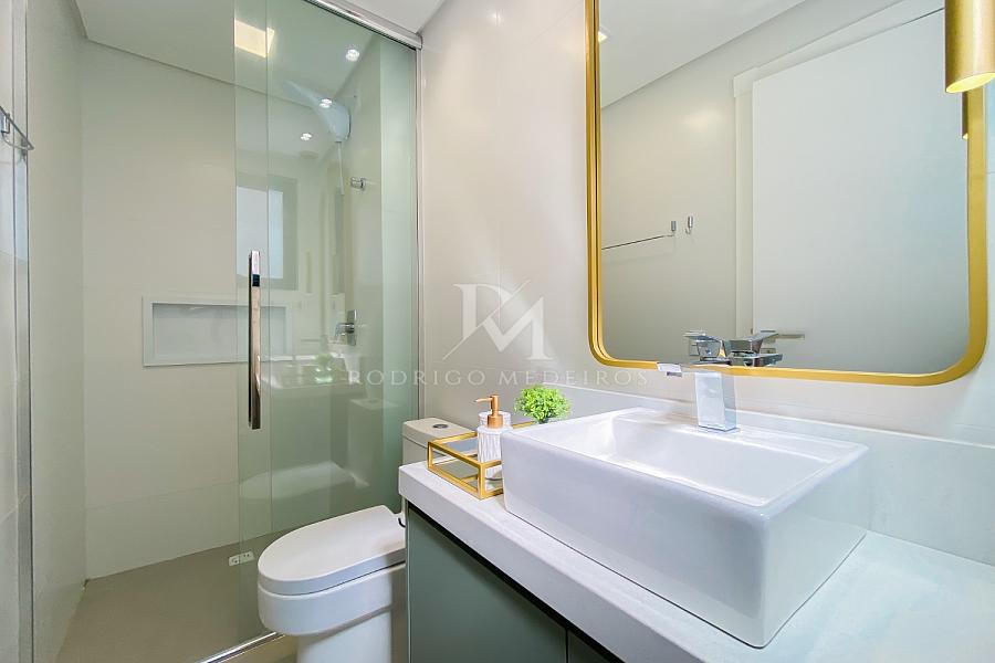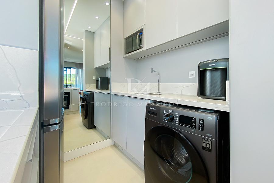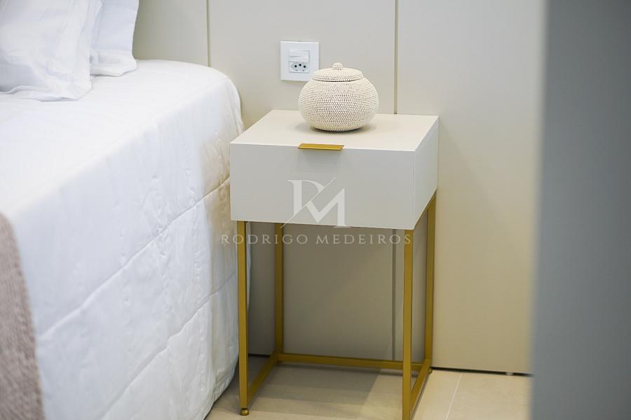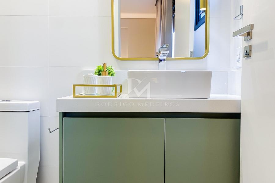 Os acabamentos reforçam a proposta de alto padrão: teto rebaixado em gesso, persianas eletrônicas integradas nos dormitórios, climatização por ar-condicionado tipo split em todos os ambientes, revestimento em porcelanato retificado e marcenaria com portas e rodapés laqueados. A infraestrutura inclui ainda hidrômetro individual, garantindo mais autonomia e controle no dia a dia.