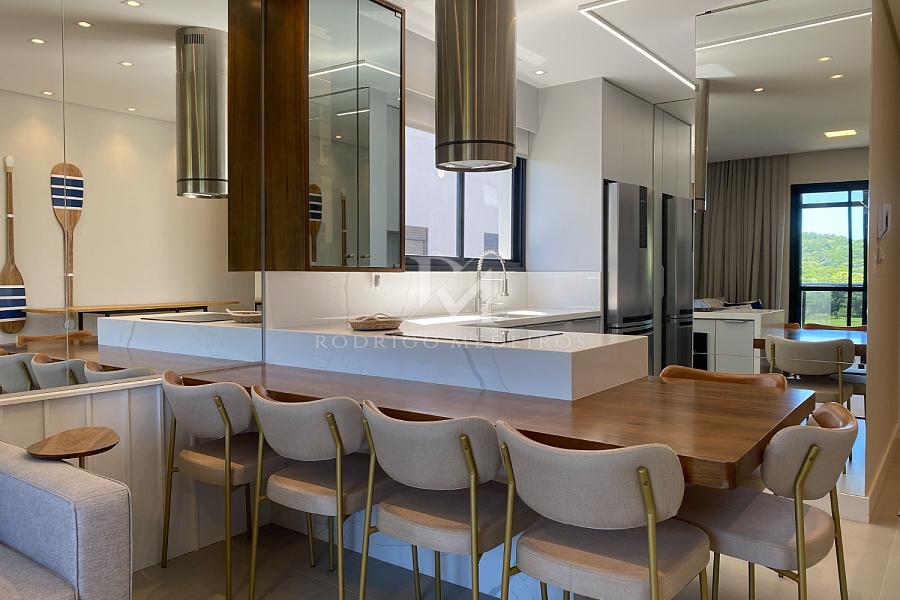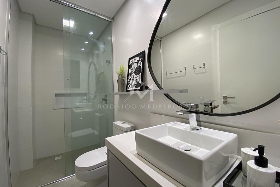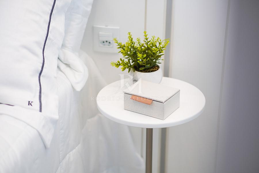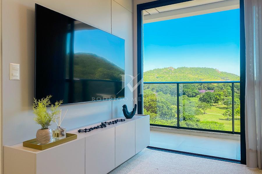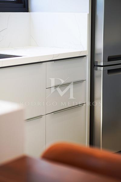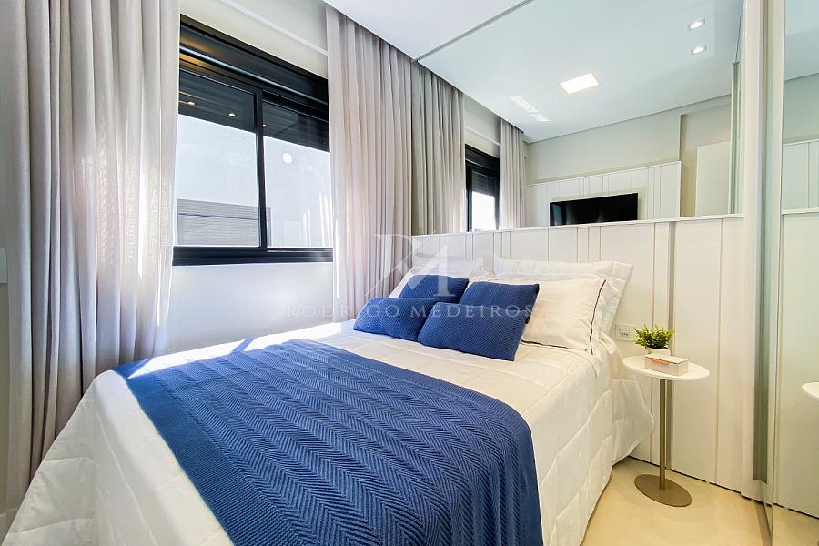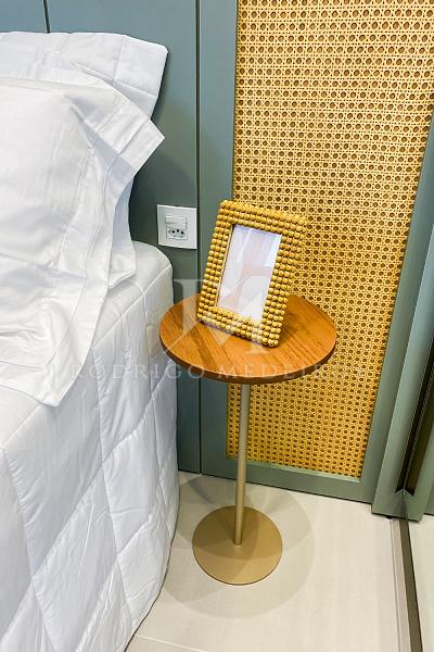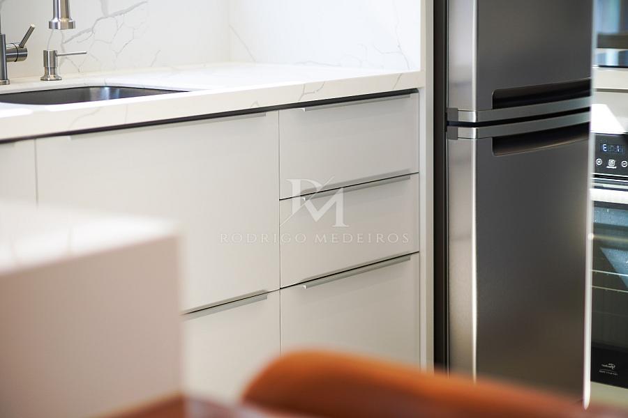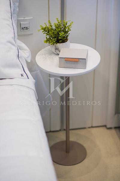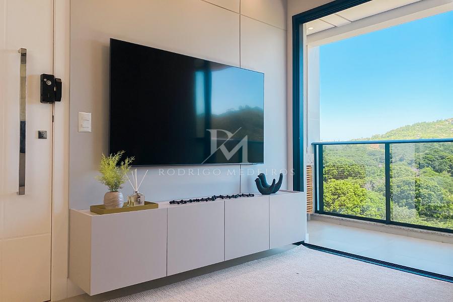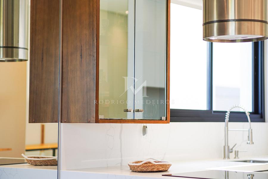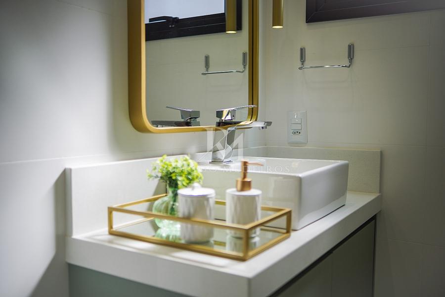 Os acabamentos reforçam a proposta de alto padrão: teto rebaixado em gesso, persianas eletrônicas integradas nos dormitórios, climatização por ar-condicionado tipo split em todos os ambientes, revestimento em porcelanato retificado e marcenaria com portas e rodapés laqueados. A infraestrutura inclui ainda hidrômetro individual, garantindo mais autonomia e controle no dia a dia.