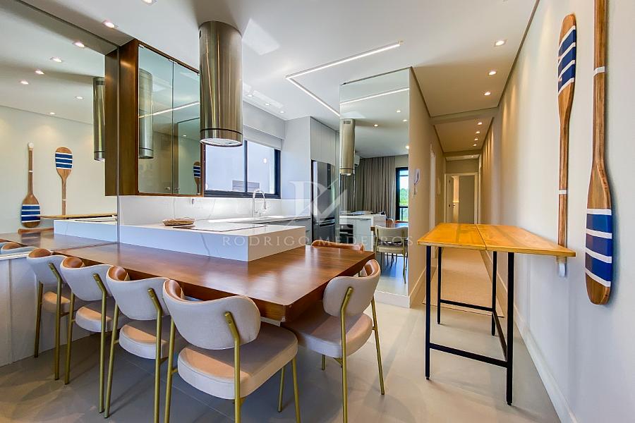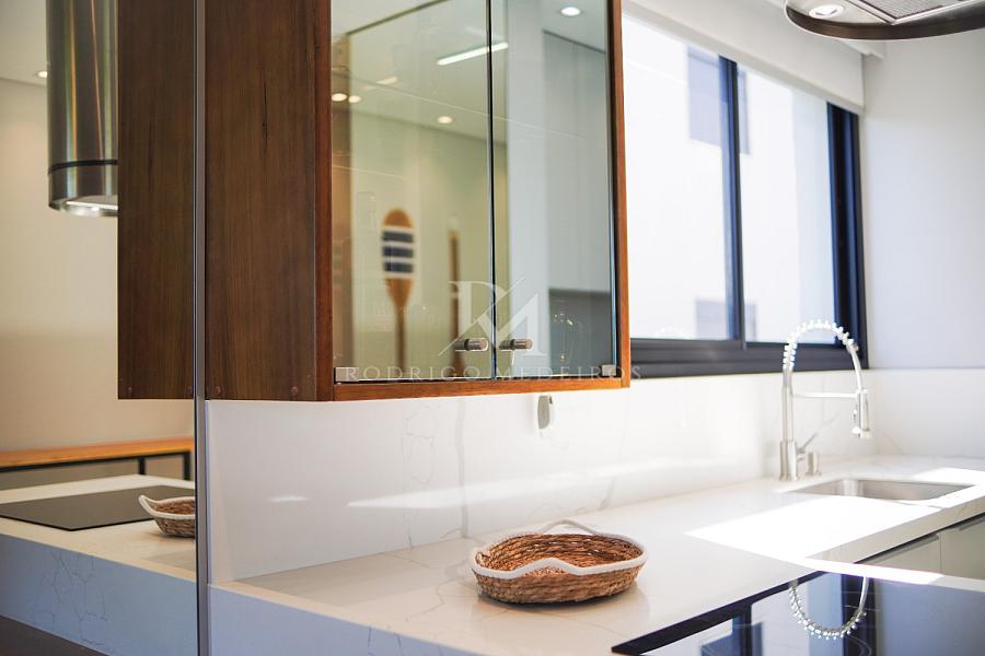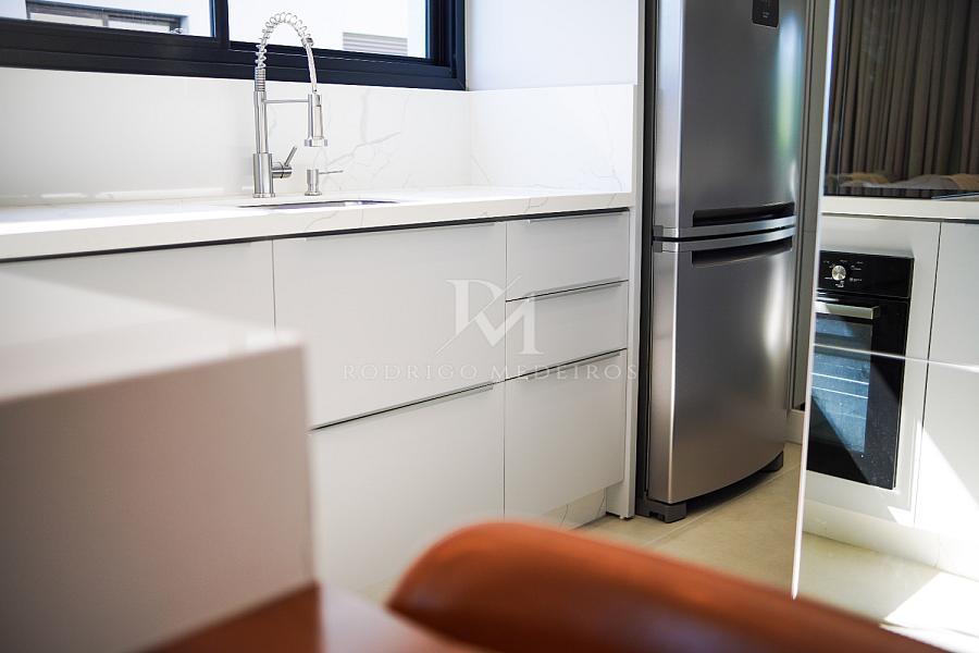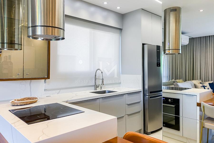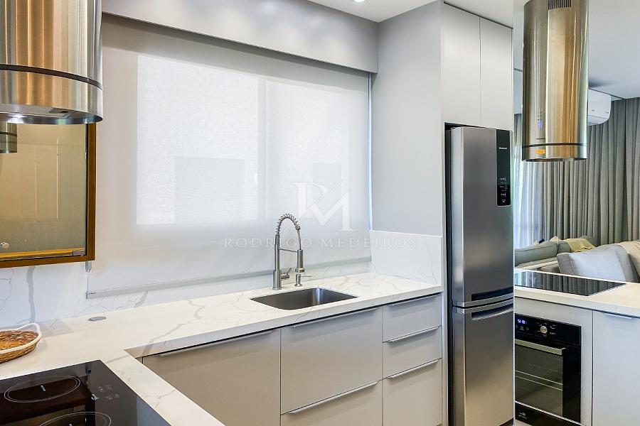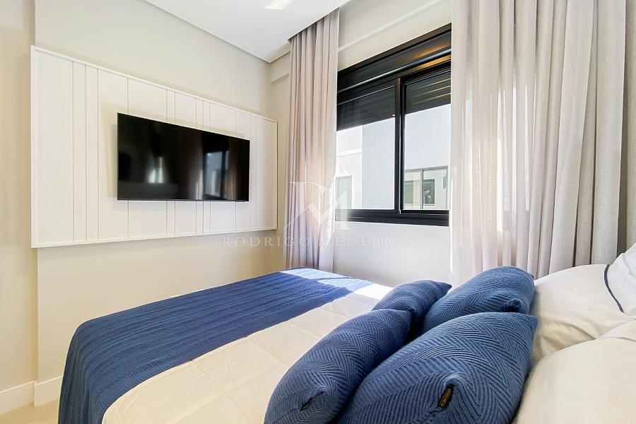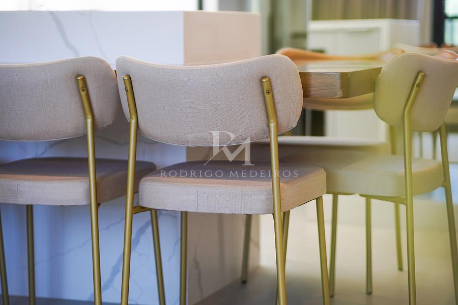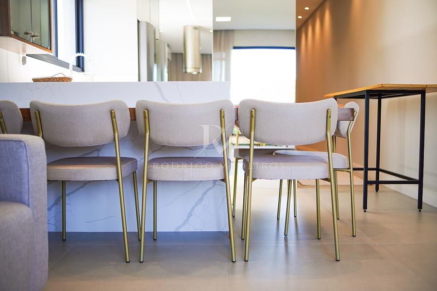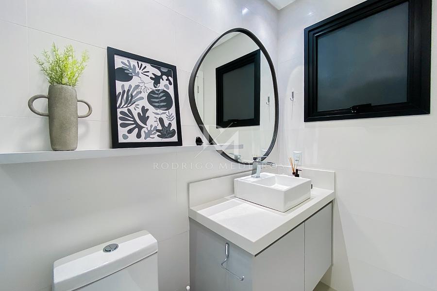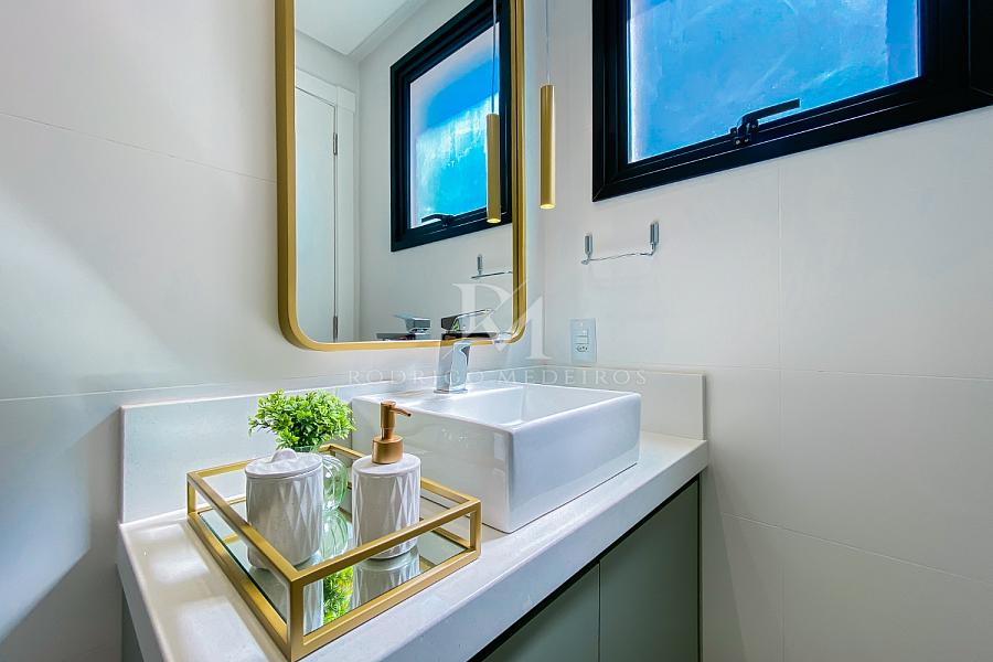 Os acabamentos reforçam a proposta de alto padrão: teto rebaixado em gesso, persianas eletrônicas integradas nos dormitórios, climatização por ar-condicionado tipo split em todos os ambientes, revestimento em porcelanato retificado e marcenaria com portas e rodapés laqueados. A infraestrutura inclui ainda hidrômetro individual, garantindo mais autonomia e controle no dia a dia.
