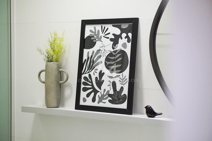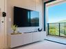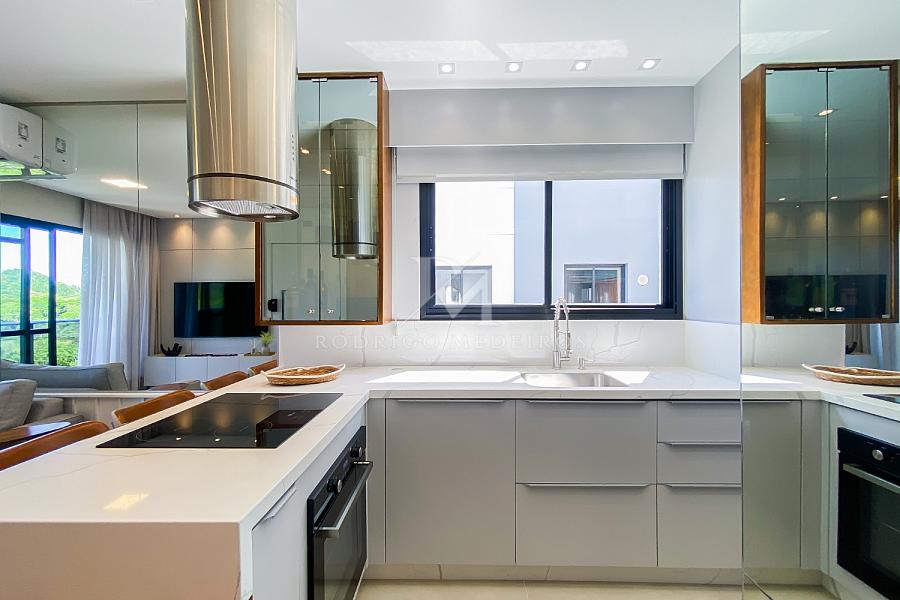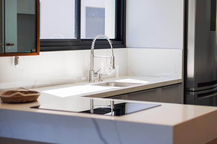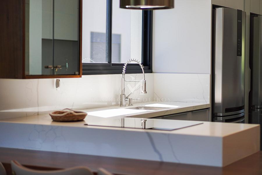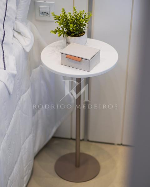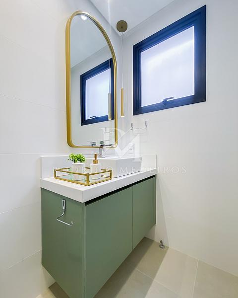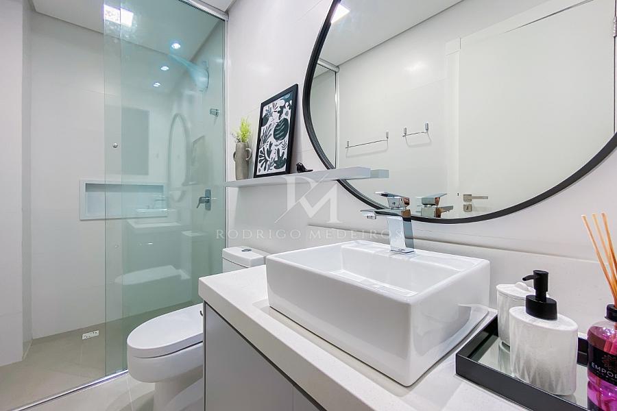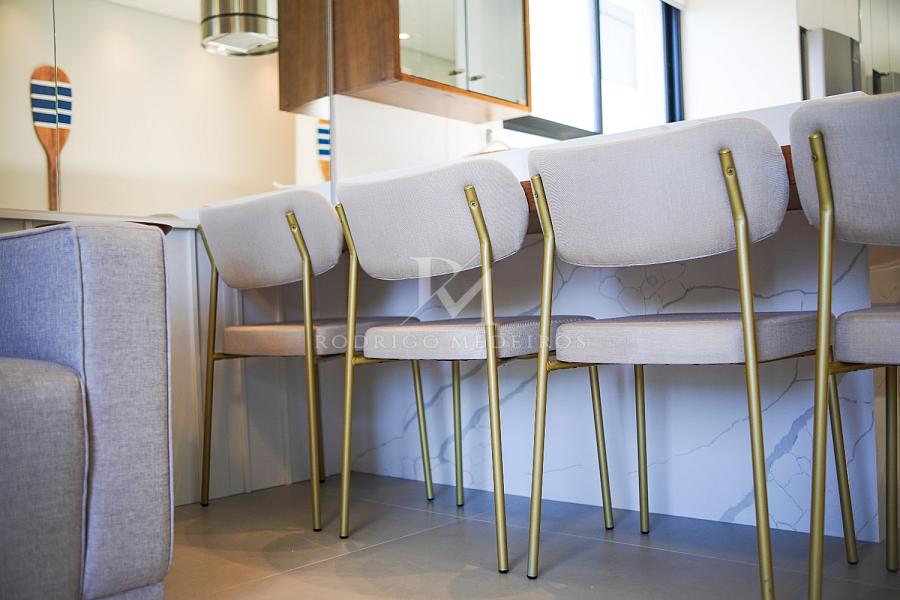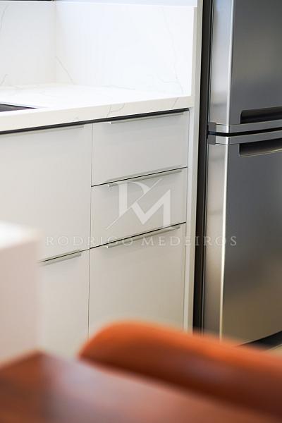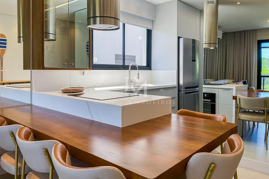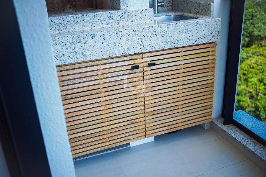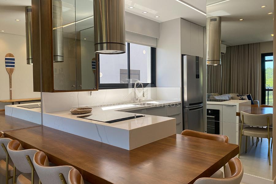 Os acabamentos reforçam a proposta de alto padrão: teto rebaixado em gesso, persianas eletrônicas integradas nos dormitórios, climatização por ar-condicionado tipo split em todos os ambientes, revestimento em porcelanato retificado e marcenaria com portas e rodapés laqueados. A infraestrutura inclui ainda hidrômetro individual, garantindo mais autonomia e controle no dia a dia.