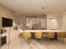 As plantas priorizam integração entre living, cozinha e varanda, proporcionando ambientes funcionais e bem iluminados.