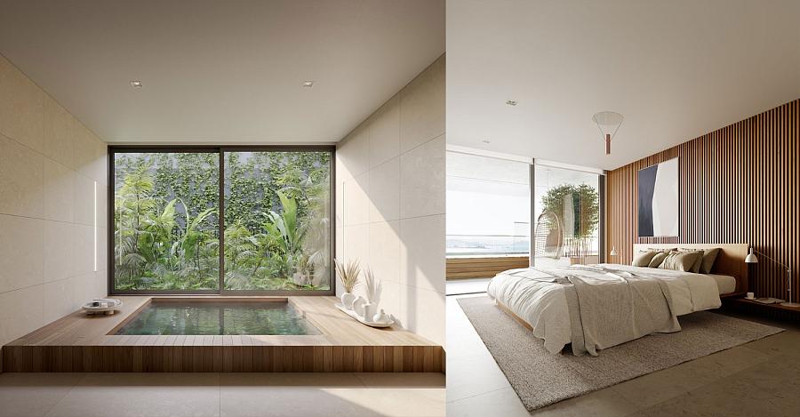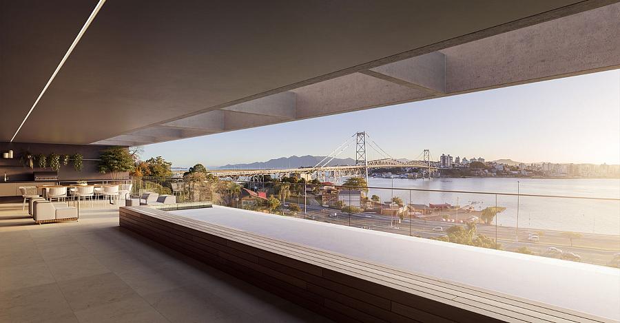 varanda exclusiva oferece uma vista deslumbrante da beira-mar, além de contar com uma piscina privativa, perfeita para momentos de relaxamento e lazer.