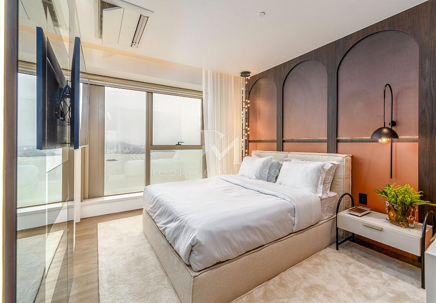 E essa unidade em destaque vai além do extraordinário: parte do seu mobiliário foi assinada pela icônica Fendi Casa, marca italiana reconhecida mundialmente por seu estilo sofisticado e atemporal. Desde 1989, a Fendi Casa é referência no desenvolvimento de móveis e objetos de design que aliam tradição e inovação, presentes nas mais prestigiadas residências, iates, vilas e jatos executivos ao redor do mundo. O resultado é uma ambientação exclusiva, que reflete o gosto pessoal do cliente com a elegância inconfundível da grife, além de um cuidado especial com a sustentabilidade.