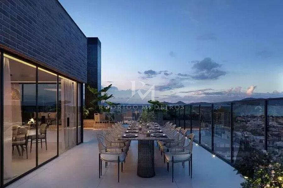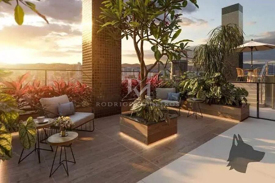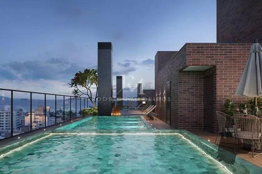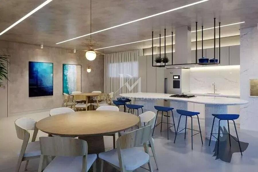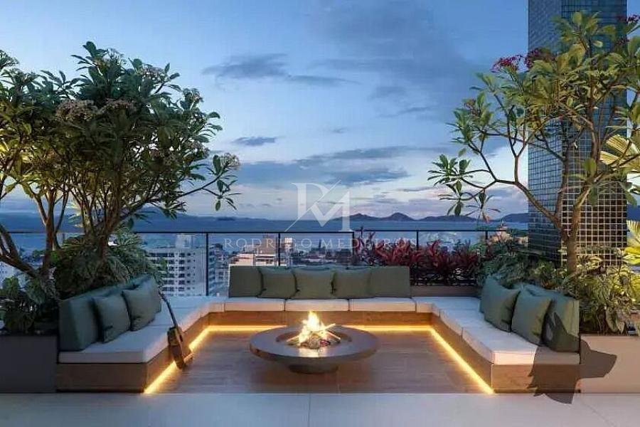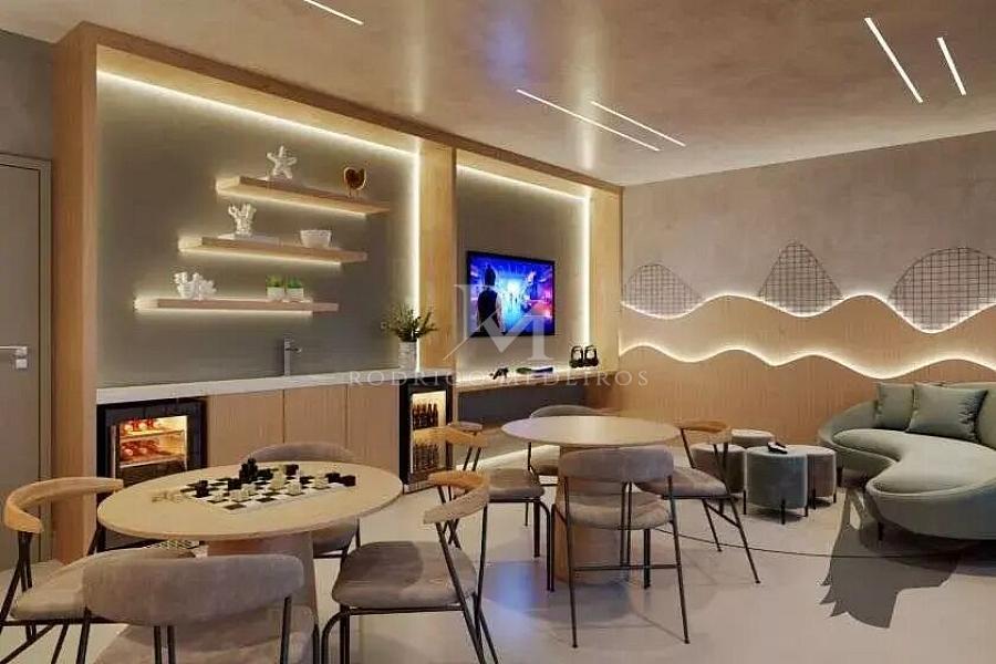 O condomínio complementa a proposta com uma área de lazer completa, incluindo rooftop com piscina e vista panorâmica para o mar e o continente, além de espaço gourmet, academia e salão de festas — ambientes que elevam o conceito de morar bem.
