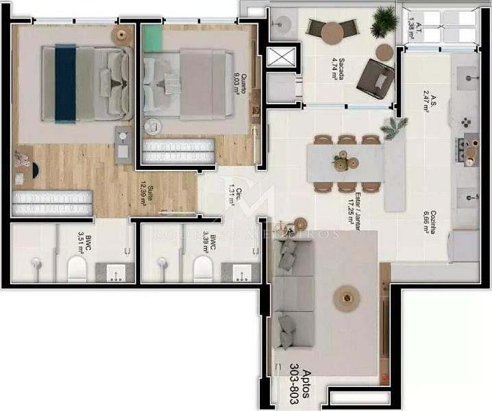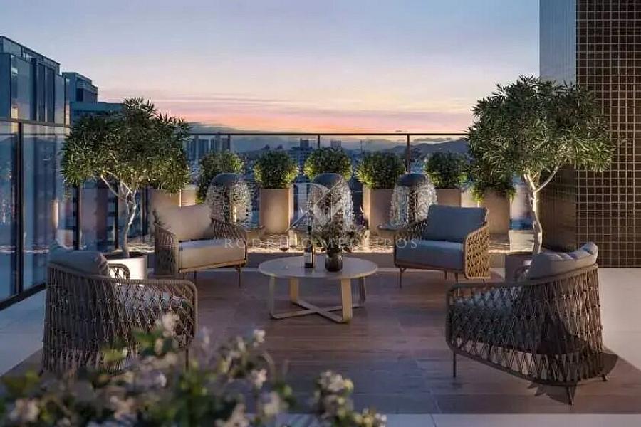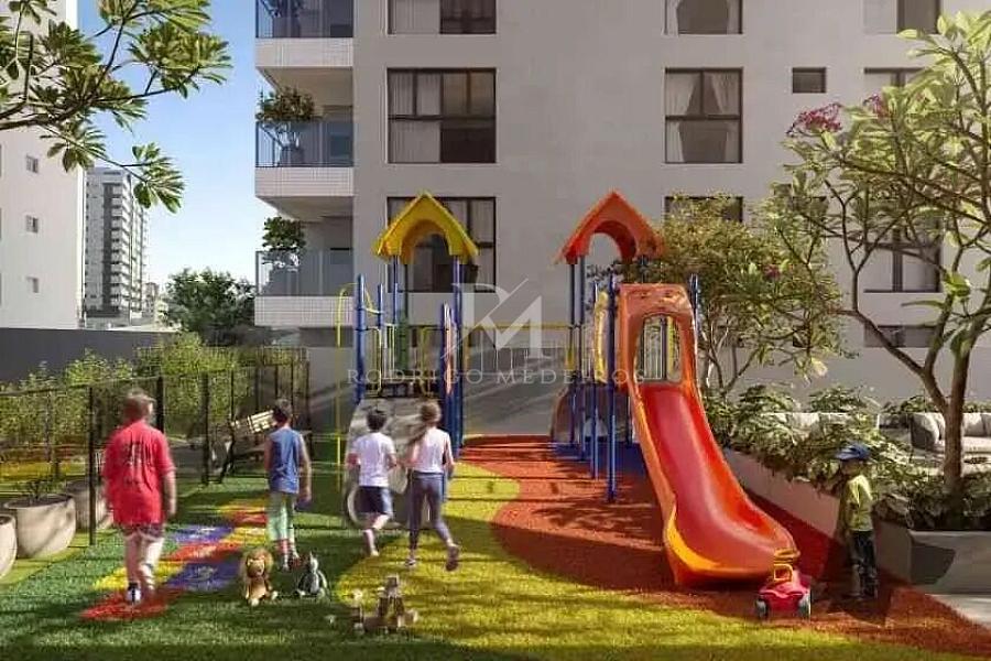 Este apartamento de alto padrão oferece dois dormitórios, ambos suítes, em uma planta cuidadosamente distribuída com a partir de 84,45m² de área privativa. A varanda gourmet com churrasqueira amplia a experiência de conforto e bem-estar, criando um espaço perfeito para receber ou relaxar no fim do dia.