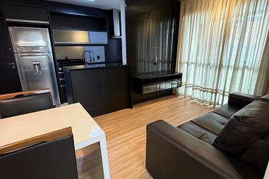 O apartamento está em andar alto, no 6º pavimento, e possui uma vaga de garagem. Conta ainda com móveis planejados, aquecimento solar e está semi-mobiliado, facilitando a mudança e o aproveitamento imediato do imóvel.