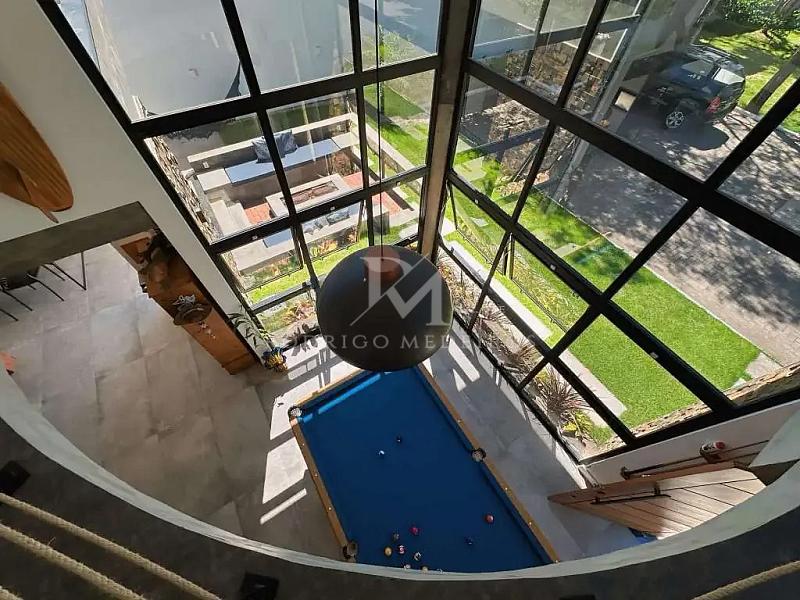 Com 275m² de área privativa em um terreno de 372m², a residência apresenta um projeto que valoriza amplitude e funcionalidade. O pé-direito duplo na sala cria um ambiente imponente e iluminado, enquanto os acabamentos e os móveis planejados — presentes na cozinha, salas, banheiros, suíte e closet — reforçam o cuidado em cada detalhe.
