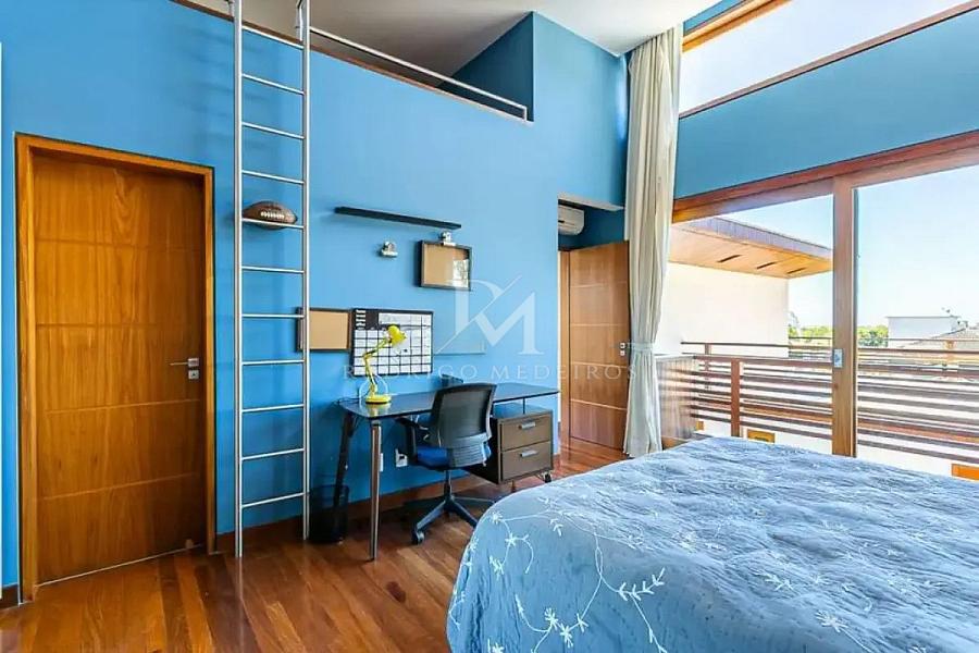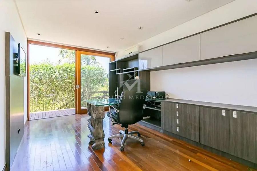 A planta ainda contempla uma suíte adicional com acesso independente, ideal para hóspedes ou uso mais reservado, além de escritório e ambientes de apoio que ampliam a versatilidade do imóvel.