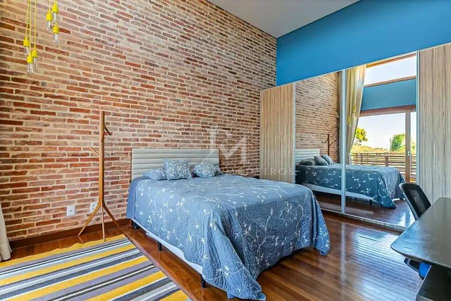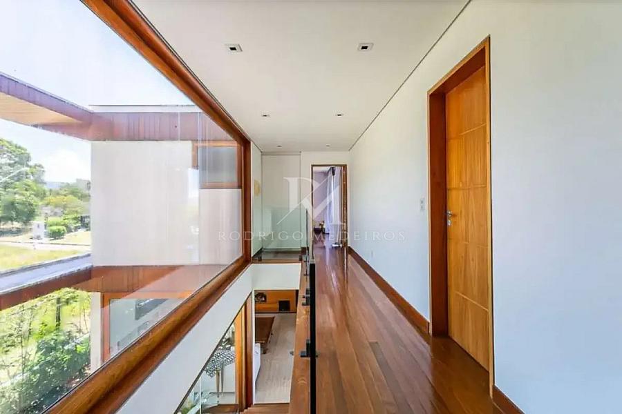 A casa conta com mais de 700 m² de área, distribuídos de forma inteligente para valorizar a paisagem em todos os ambientes. No pavimento superior, as três suítes foram posicionadas para aproveitar ao máximo a vista, com destaque para a suíte master, que oferece uma experiência singular: varanda ampla, vista panorâmica em 180°, banheira de hidromassagem e espaço versátil para academia ou área de bem-estar.
