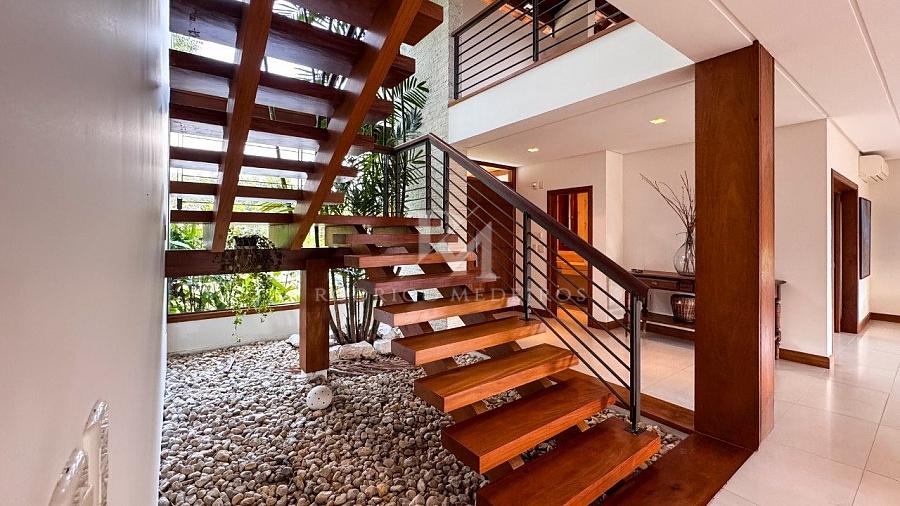 Em uma das regiões mais encantadoras de Florianópolis, esta casa no bairro Cacupé reúne privacidade, vista para o mar e um projeto que valoriza luz natural, integração e bem-estar. Com 563 m² de área privativa e um terreno generoso de 1.200 m², o imóvel oferece ambientes amplos, distribuídos com equilíbrio para quem busca viver cercado por natureza sem abrir mão da praticidade do cotidiano.