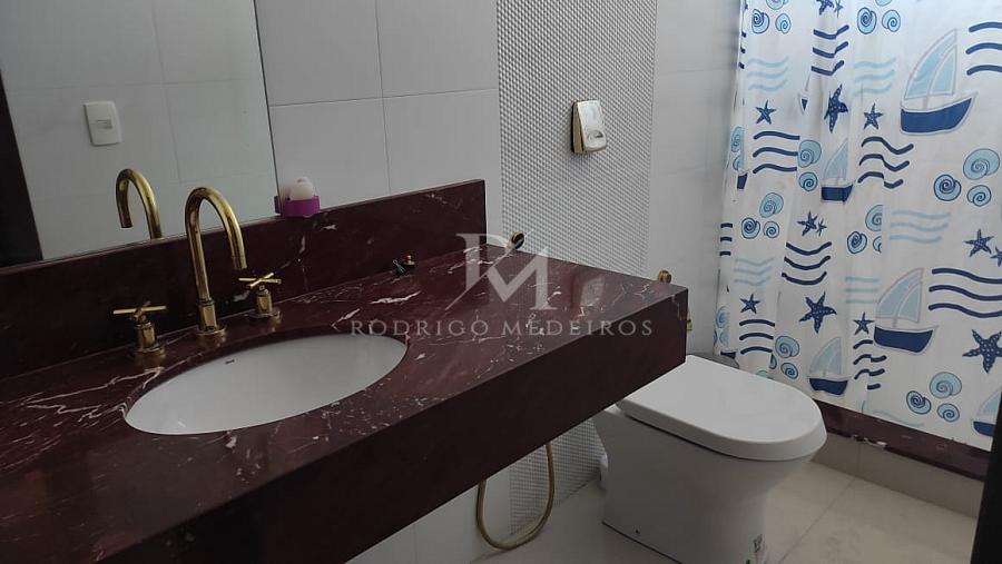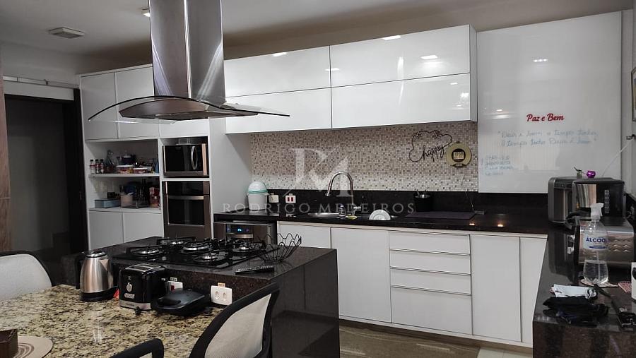 A cozinha se conecta de forma funcional aos demais ambientes, enquanto o escritório oferece um espaço reservado para trabalho ou estudo. A área íntima conta com três suítes, além de três dormitórios adicionais, atendendo com facilidade famílias maiores ou quem busca versatilidade de uso dos espaços.