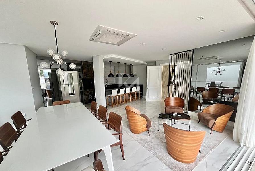• Living integrado com sala de estar, jantar e cozinha, oferecendo funcionalidade e elegância.